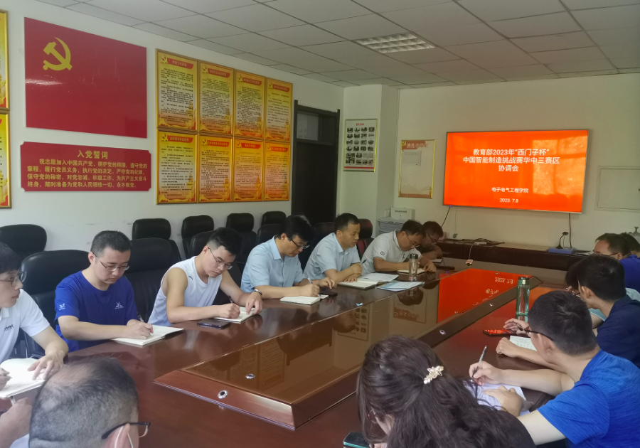 7月8日,太阳成tyc7111cc官网在睢阳校区召开教育部2023年第十七届“西门子杯”中国智能制造挑战赛华中三赛区协调会。经理赵纲领、副经理曾庆国、各组负责老师参加会议,会议由赵纲领主持。