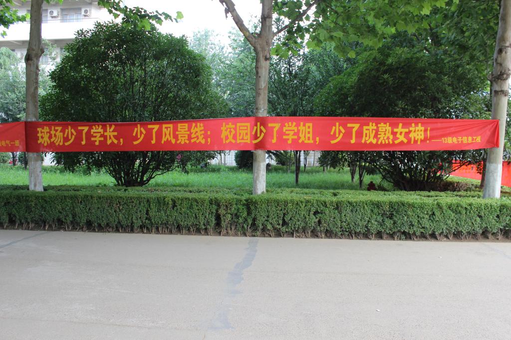 在欢送2016届毕业生期间,公司2013级各班同学自发地组织同学以做条幅的形式欢送2016届毕业生,从字里行间流露出他们对学长的情真义切和深深祝福!