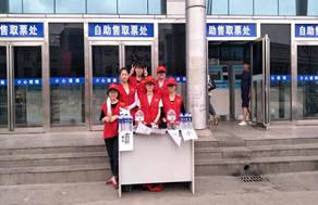 7月8日清晨,志愿队踏着愉快的步伐从公司出发去商丘中心汽车站,刚到达就看到好多人已经在那里买票取票准备坐车出发了。志愿队立马换上了志愿者的工作服开始了忙碌的一天。志愿者们今天帮人们宣传一些安全知识,希望大家能够保护好自己的财务,避免一些不必要的损失。志愿者们还引导大家到能用的机器去取票并教导大如何进行取票,使得汽车站员工减轻了一些工作量。
