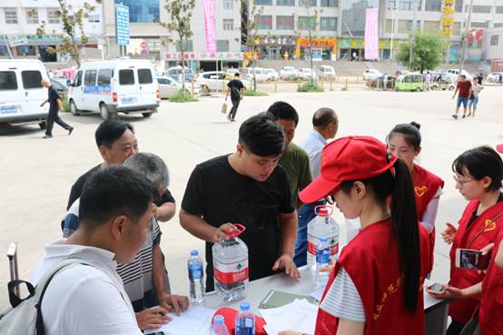 7月3日,像往常一样,团队成员早早地乘着公交车来到了商丘中心汽车站,向车站的工作人员借来了咨询台,摆好了矿泉水和问卷表,穿上了志愿者的红马甲,一天的志愿活动就这样开始了。