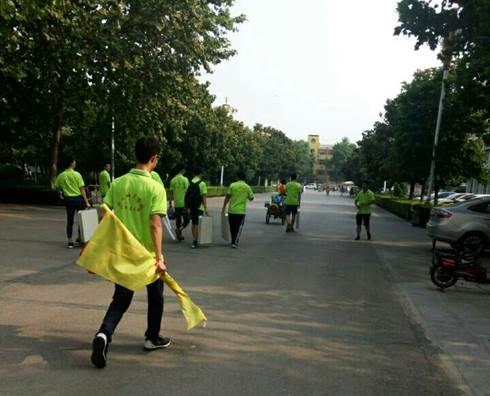 实践团成员一如既往地早早集合,找来三轮车,将已准备好的工具搬上车,前往活动现场。