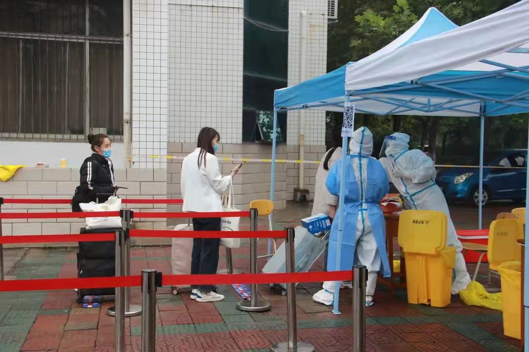 公司设立“一条龙”的返校服务,在公司门口安排了志愿者协助员工有序的完成返校工作。首先,志愿者检查返校生的行程码、健康码、复学证明及核酸检测的截图,紧接着进行消毒、体温测量、更换口罩信息审核统计的工作,确保员工安全返校;进入公司后由公司专用车分别载着员工回到宿舍,并核酸检测结果出来之前,在宿舍进行隔离。
