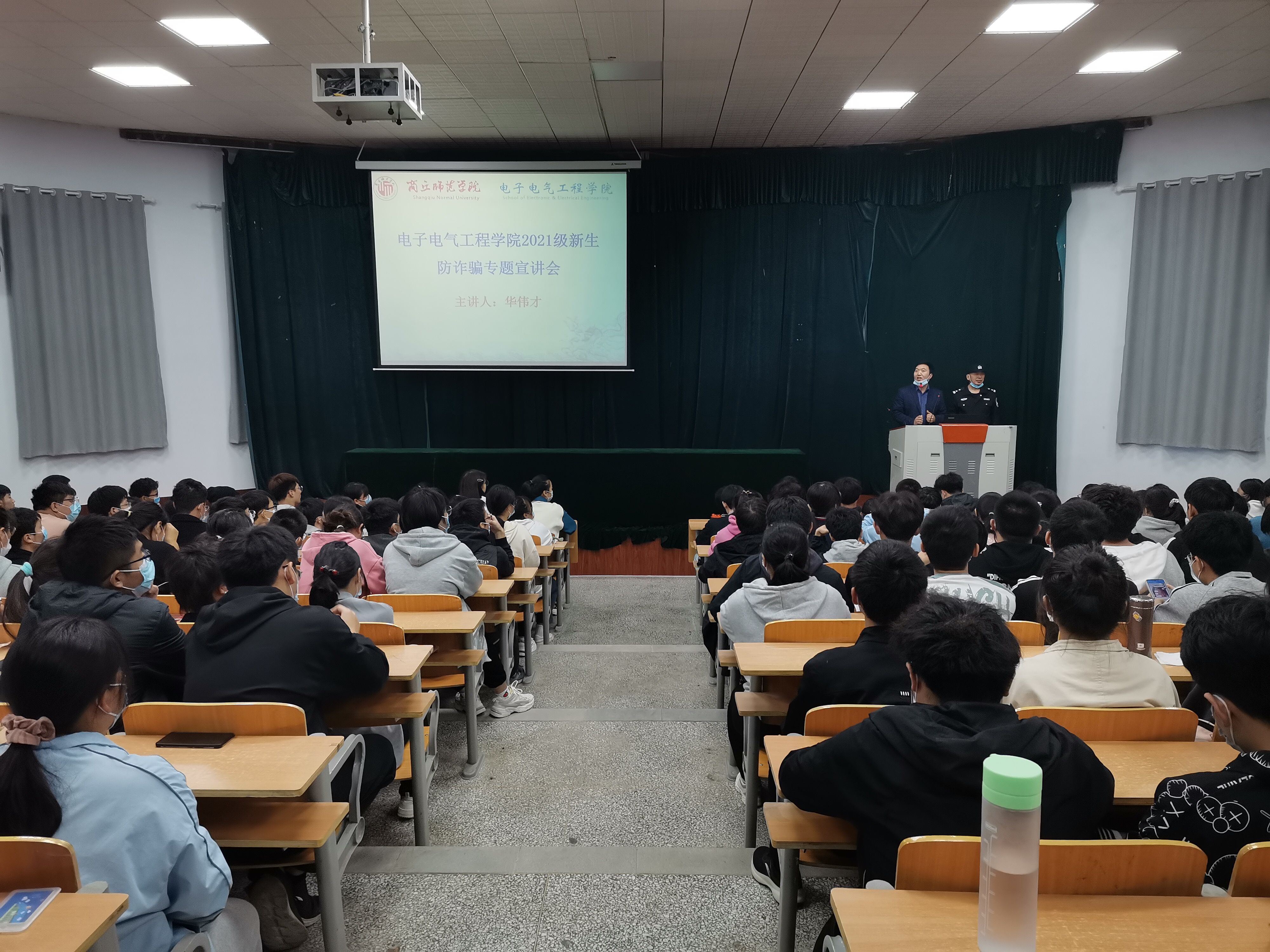 11月4日,太阳成tyc7111cc官网邀请文化路派出所华伟才警官,于睢阳校区为2021级新生做防诈骗专题宣讲会。公司党委副书记蒋玉涛,21级辅导员陈玉昊和全体新生340余人参加宣讲会。