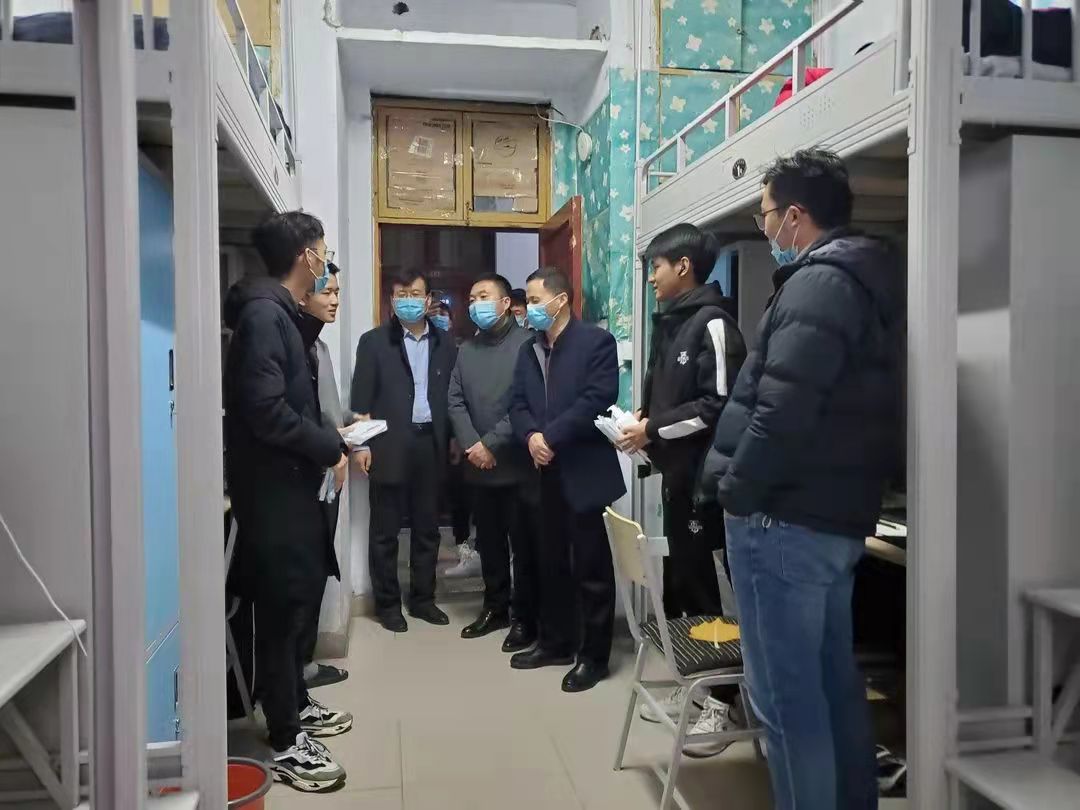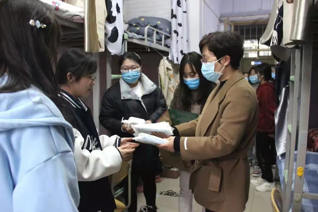 11月12日,公司党委书记李琳、经理赵纲领、副书记蒋玉涛、副经理曾庆国带领全体辅导员和班主任走进宿舍,为全院员工发放口罩、洗手液等防疫物资。
