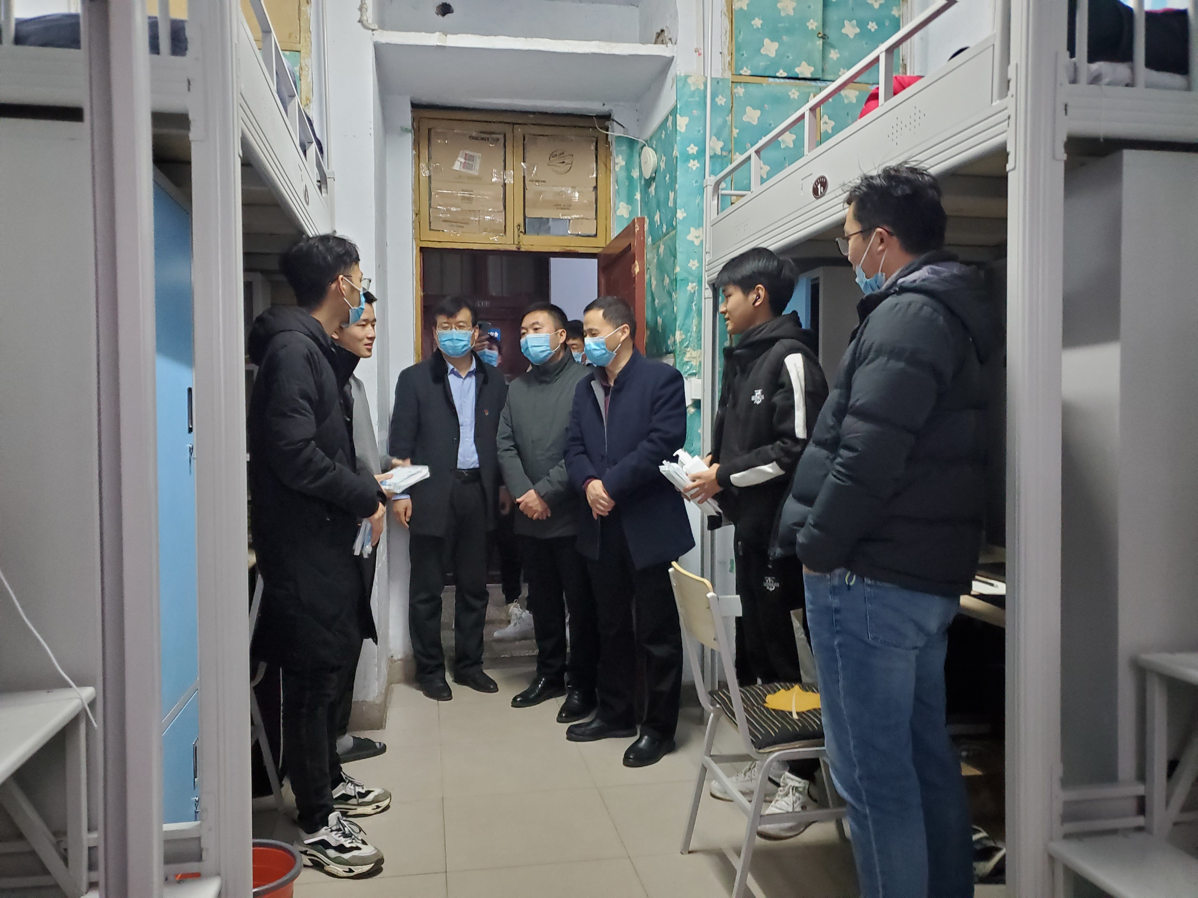 11月13日,公司党政领导班子带领辅导员、班主任走进宿舍为全院员工发放口罩、洗手液等防疫物资。走访过程中,各位领导老师与员工亲切交谈,并嘱咐员工要提高疫情防控意识,遵守公司疫情防控规定,如有紧急情况发生,要及时与老师联系。
