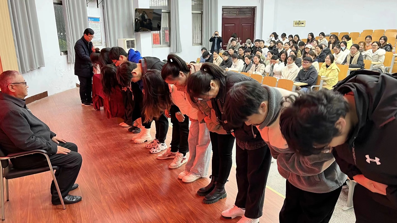 第二阶段,分组进行拜师仪式。参会坊员面向自己的师父行三鞠躬拜师礼,表达员工对师父的尊重和感谢。