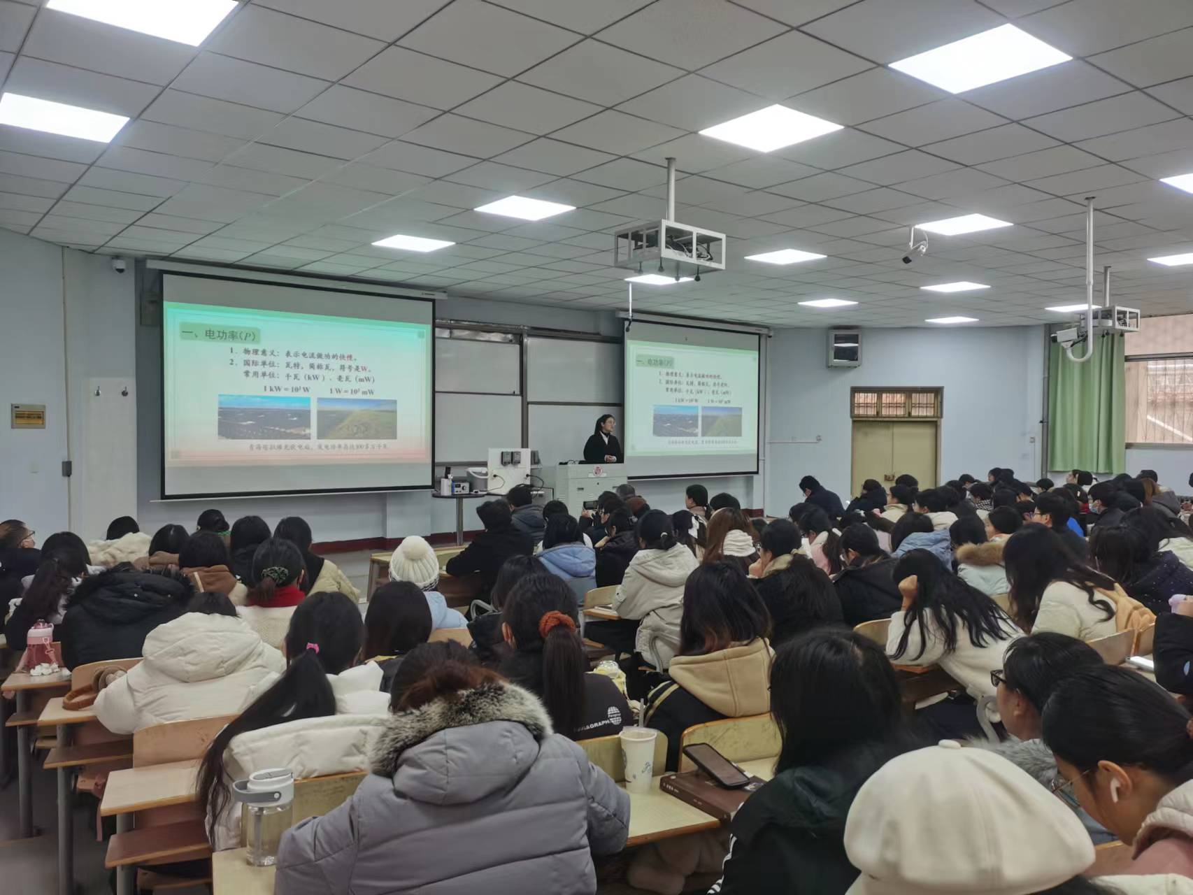 12月27日,睢阳校区1号教学楼106教室,公司邀请商丘市实验中学一线优秀青年教师袁文洁讲授了一堂公开课,校内外指导教师和21级、22级参加集中实习的物理学专业全体员工参加。