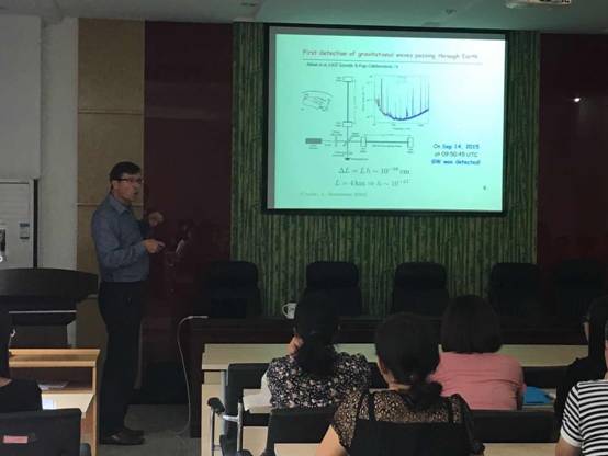 报告中,Philipp教授首先介绍了Advanced LIGO引力波探测器探测双黑洞并合和双中子星并合事件。2015年9月14日,Advanced LIGO首次探测到双黑洞并合产生的引力波事件。2 015年12月26 Advanced LIGO第二次探测到双黑洞合并。2017年10月16日22时,国际天文界宣布了一次新的科学进展:首次直接探测到了双中子星并合产生的时空涟漪——引力波及其伴随的电磁信号。这是人类科学史上首次利用引力波天文台和其他望远镜同时观测到了同一个天体物理事件。这次发现是由Advanced LIGO和欧洲的Virgo引力波探测器,以及其他70个地面及空间望远镜共同完成的,发现结果发表在Physical Review Letters上,由LIGO-Virgo和其他天文学家合作撰写的系列相关论文也分别发表在Astrophysical Journal Letters和Nature等期刊。