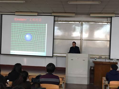 袁业飞教授从牛顿定律引入,然后介绍了广义相对论及3个观测检验。从广义相对论引入黑洞后,袁老师重点讨论了黑洞探测的可能性。最后,袁老师对近期LIGO探测到的双黑洞并合的引力波事件做了详细的介绍。报告会后,同学们就个人兴趣热点与袁业飞教授进行了互动交流。