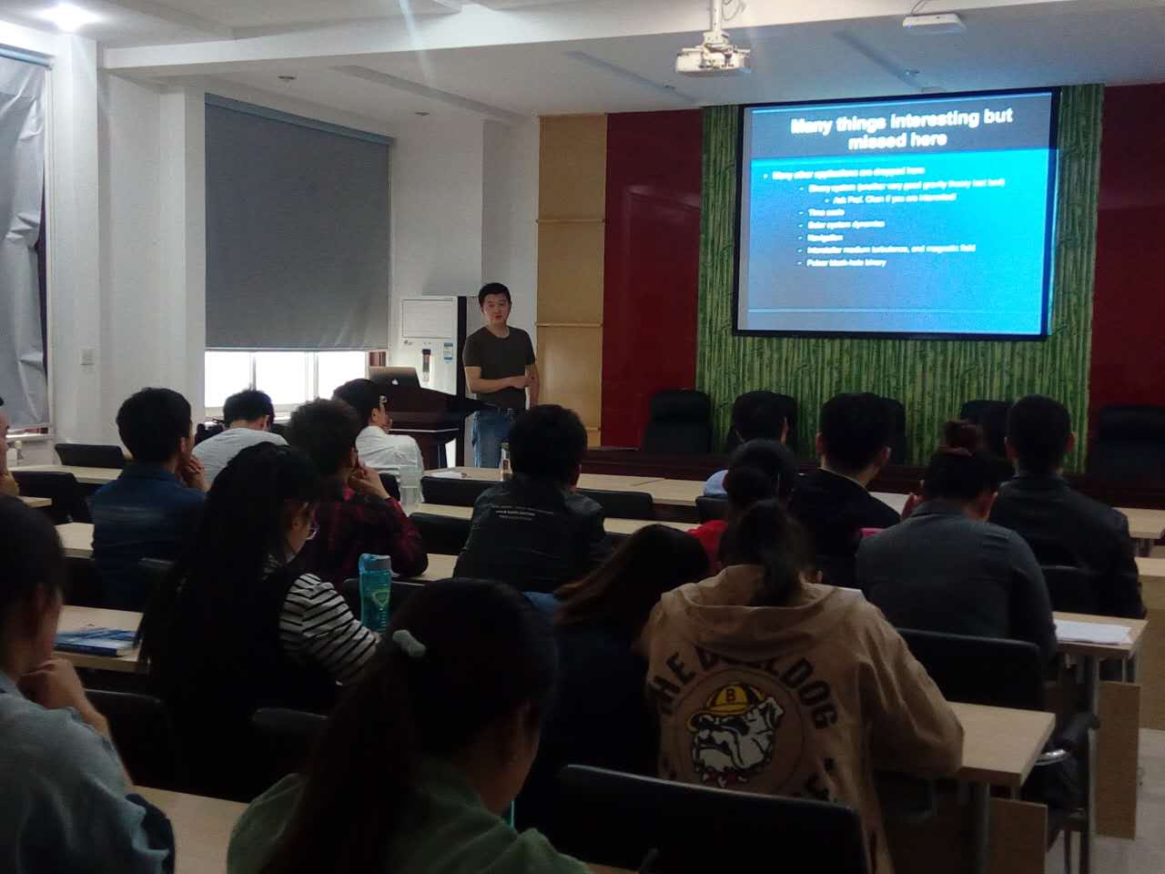 4月19日上午,北京大学科维里天文与天体物理研究所研究员李柯枷在物理实验楼二楼学术报告厅做了题为“脉冲星测时和引力波探测”的学术报告。太阳成tyc7111cc官网经理陈文聪、副经理李朋和部分博士教师出席了报告会。报告由陈文聪教授主持,公司2014级物理学和应用物理专业员工聆听了报告。