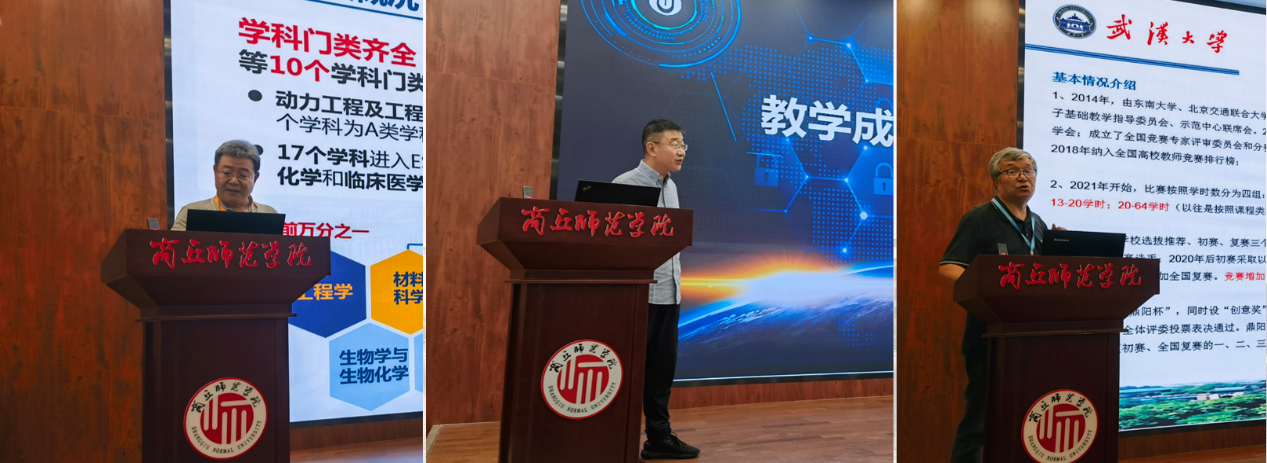 在学术交流环节,特别邀请西安交通大学梁得亮教授、郑州轻工业大学王永华教授、武汉大学陈小桥教授、太阳成tyc7111cc官网赵纲领教授分别进行题为《产教融合协同育人探索与实践》、《教学成果奖的凝练和申报》、《实验案例设计竞赛经验交流与研讨》、《太阳成tyc7111cc官网建设与发展》的专题报告。