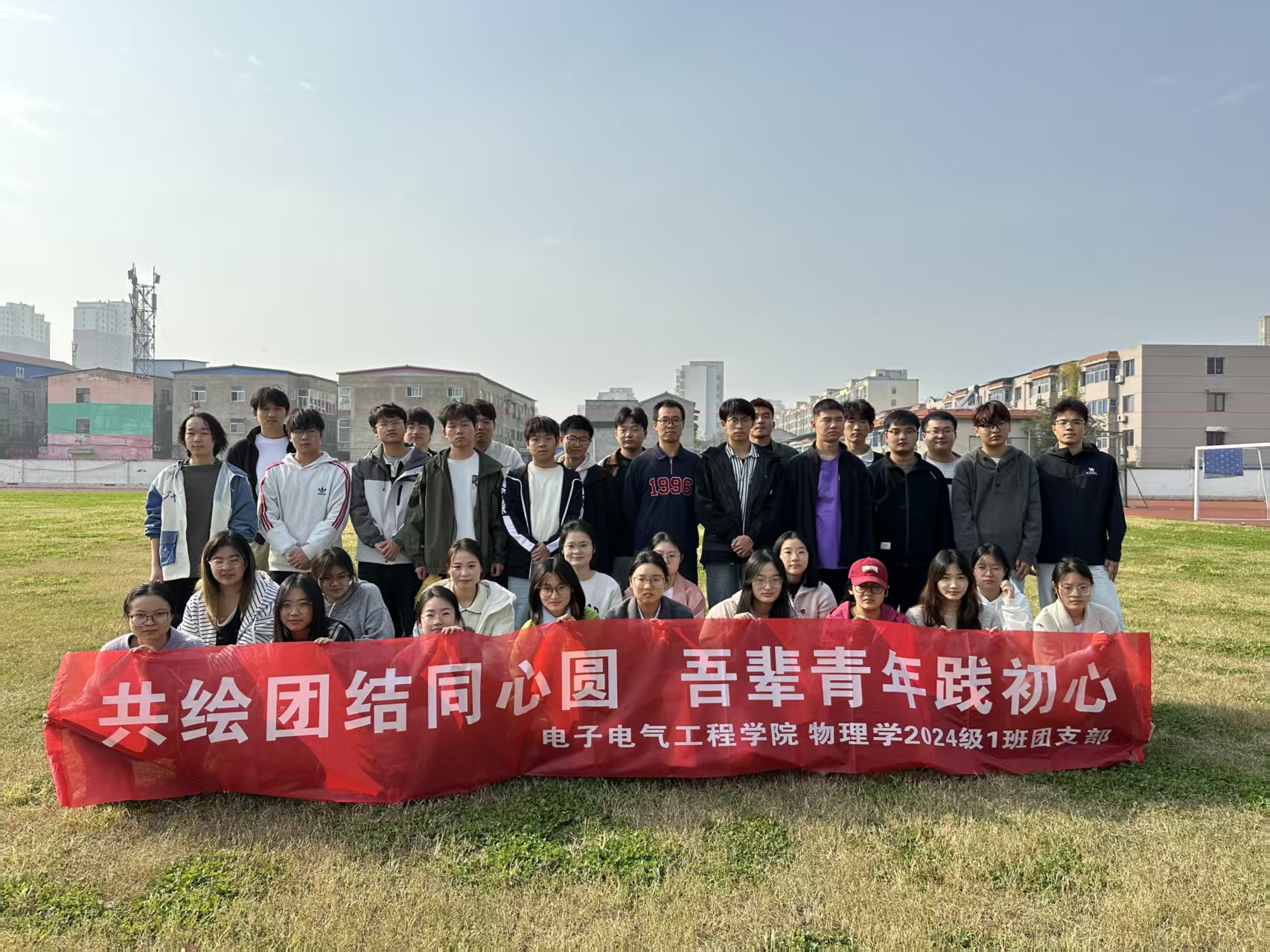11月14日,24级物理学1班团支部及25级物理学(全免)1班团支部,在睢阳校区操场开展了以“共绘团结同心圆,吾辈青年践初心”为主题的团日活动。