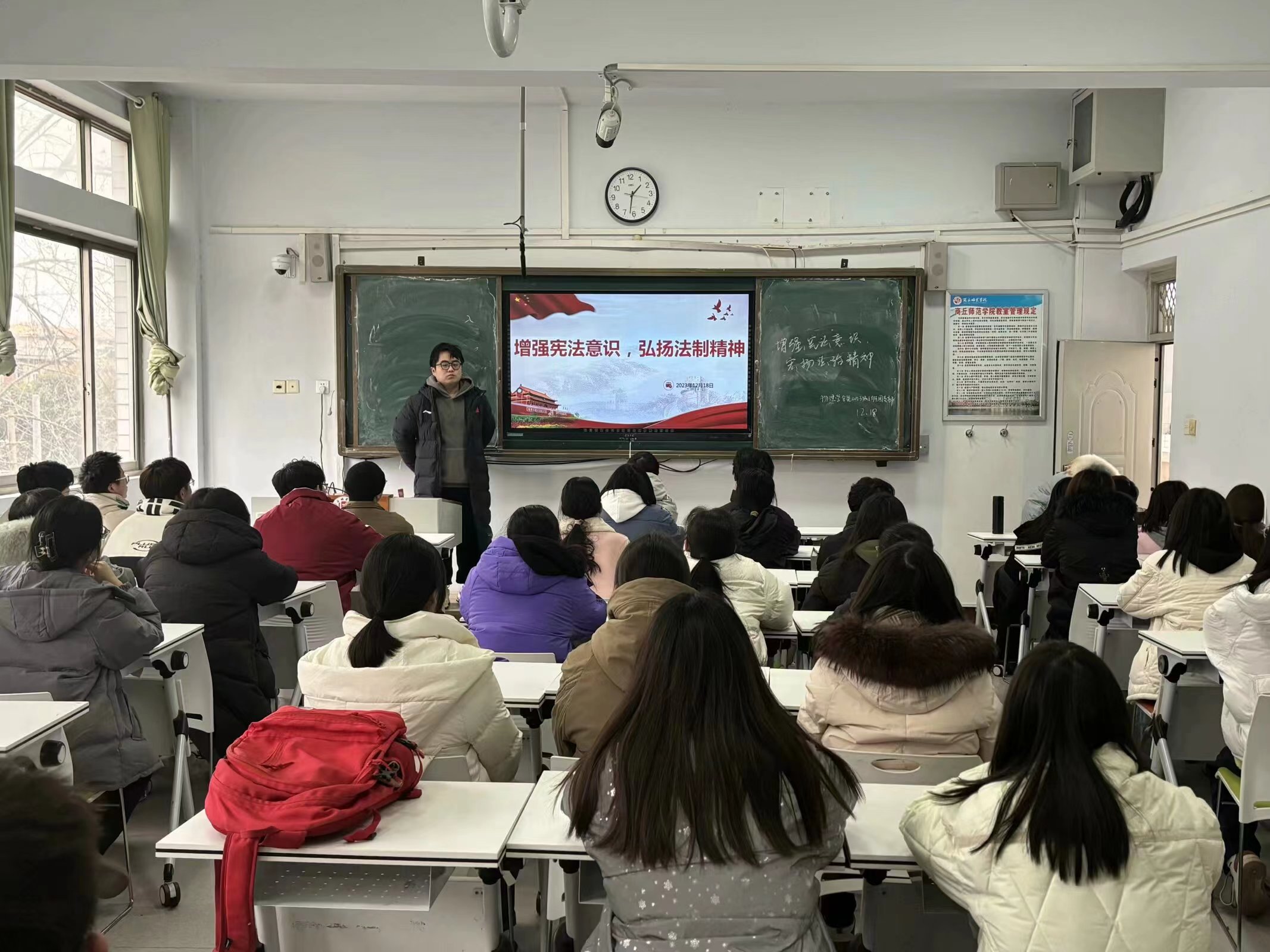 12月23日,太阳成tyc7111cc官网各团支部于睢阳校区一号教学楼开展了十二月份主题团日活动,2022级、2023级全体团员参与此次活动。