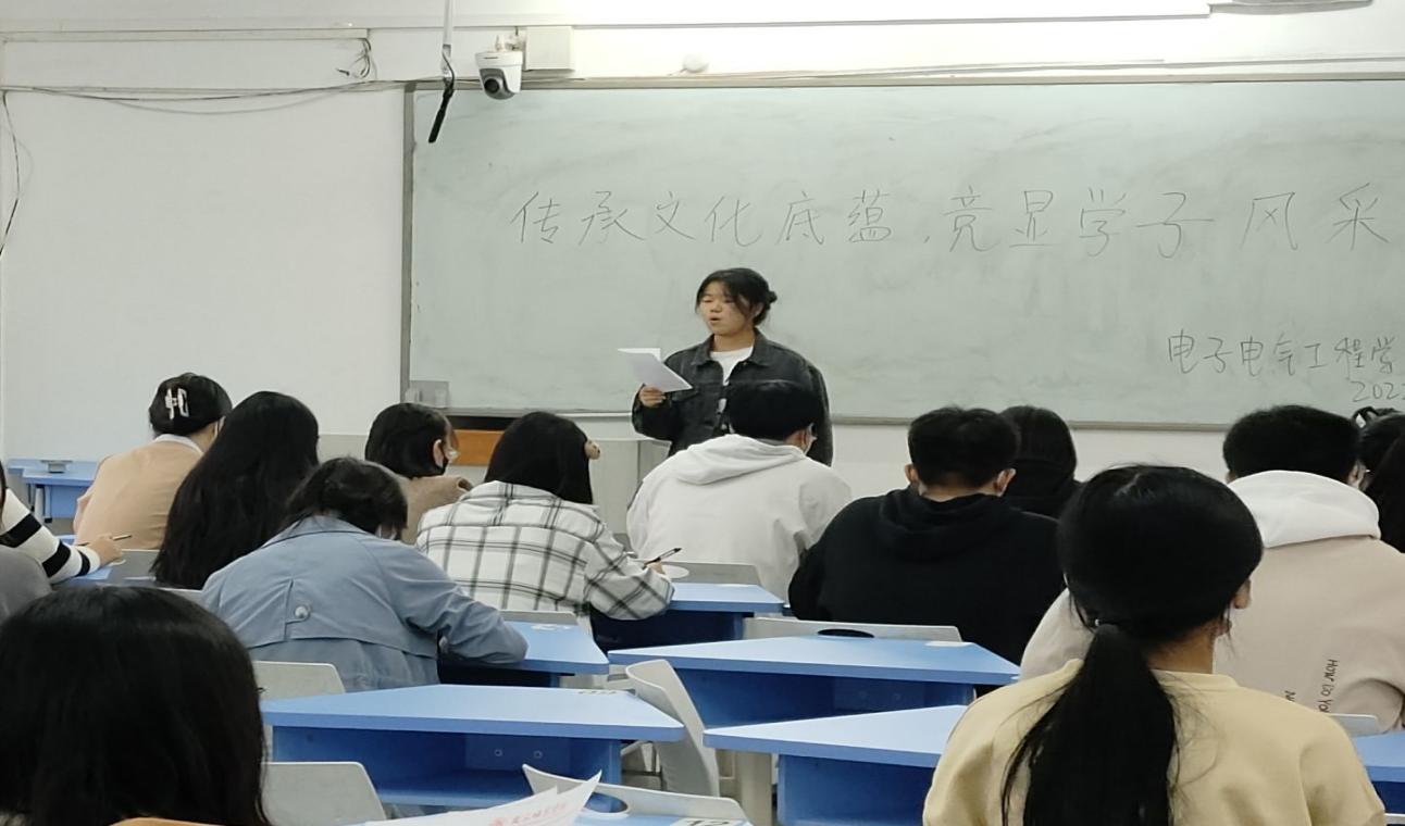 2023年2月27日,宣讲团于睢阳校区物电楼402室开展“传承文化底蕴,尽显学子风采”主题宣讲,该活动弘扬了我国深厚的传统文化,提高了同学对中华文化的了解,增强了同学们的民族自豪感。