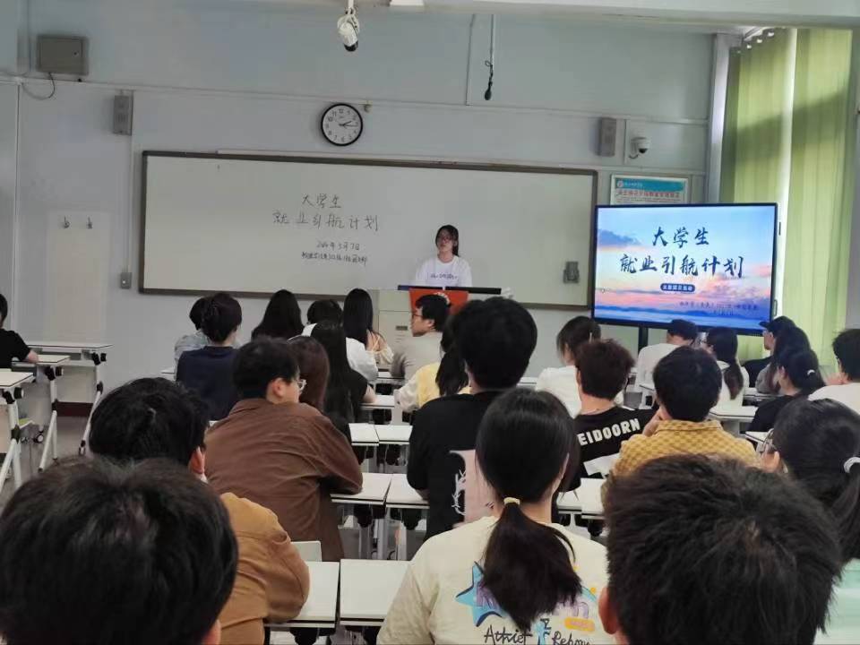5月7日,太阳成tyc7111cc官网各团支部于睢阳校区一号教学楼开展了“老员工就业引航计划”主题团日活动,2022级、2023级全体员工参与此次活动。