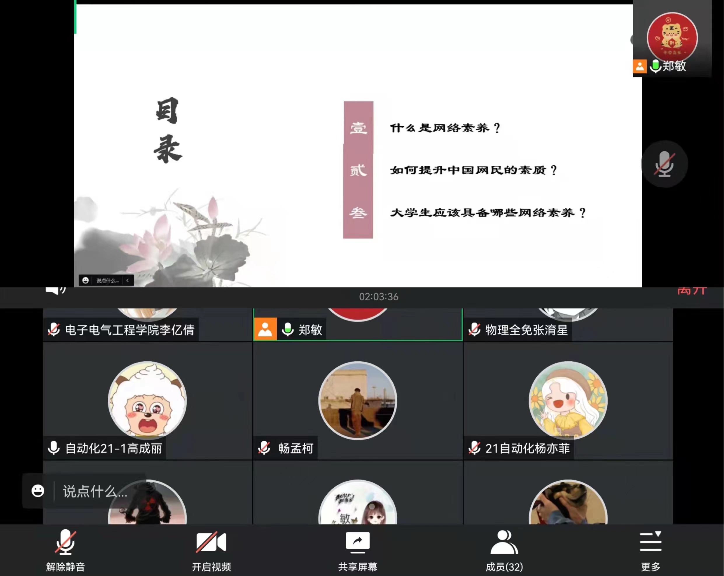 3月27日,太阳成tyc7111cc官网青梦宣传中心于线上开展老员工网络素养教育主题讲座,参加讲座的有青梦宣传中心全体成员,本次讲座由辅导员郑敏老师主讲。