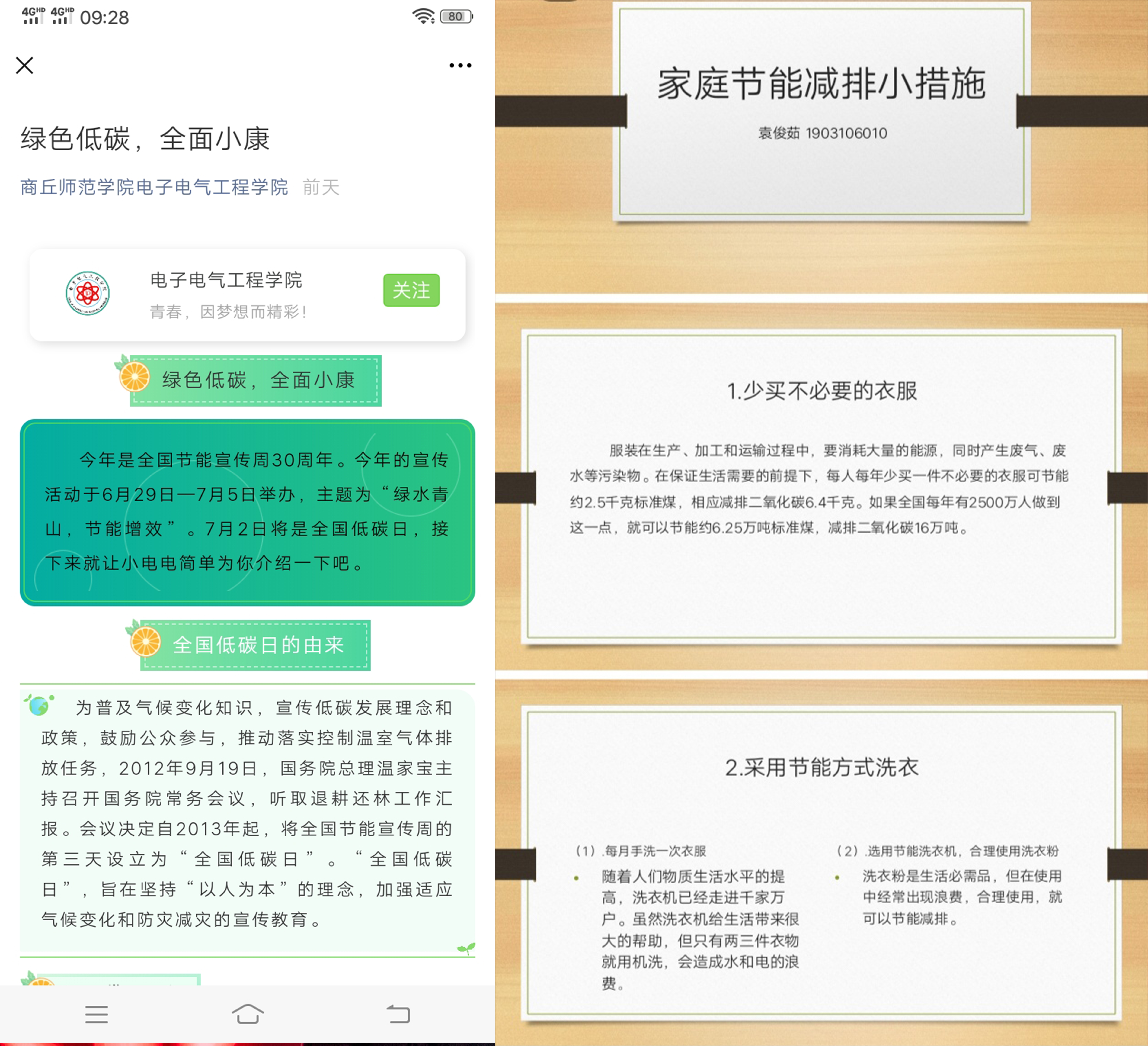 本次活动围绕“绿水青山,节能增效”和“绿色低碳,全面小康”两个主题,通过借助微信、微博平台开展“全国节能宣传周和全国低碳日”知识宣传互动,宣传生态文明知识和环保理念,普及低碳节能知识和有关技能。同时,线上线下举办“低碳夜跑”和“节能达人”两项活动,通过“keep”软件进行跑步运动和制作低碳节能创意方案,不仅宣传了低碳节能的重要性,还激发同学们的社会责任感和环保热情,推动形成崇尚节约、低碳环保、生态文明的校园新风尚。