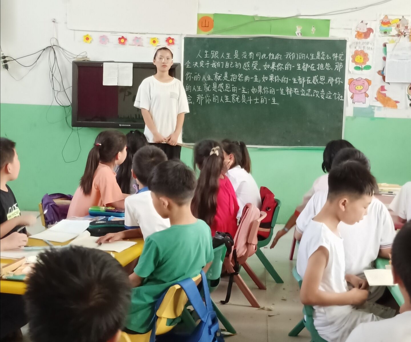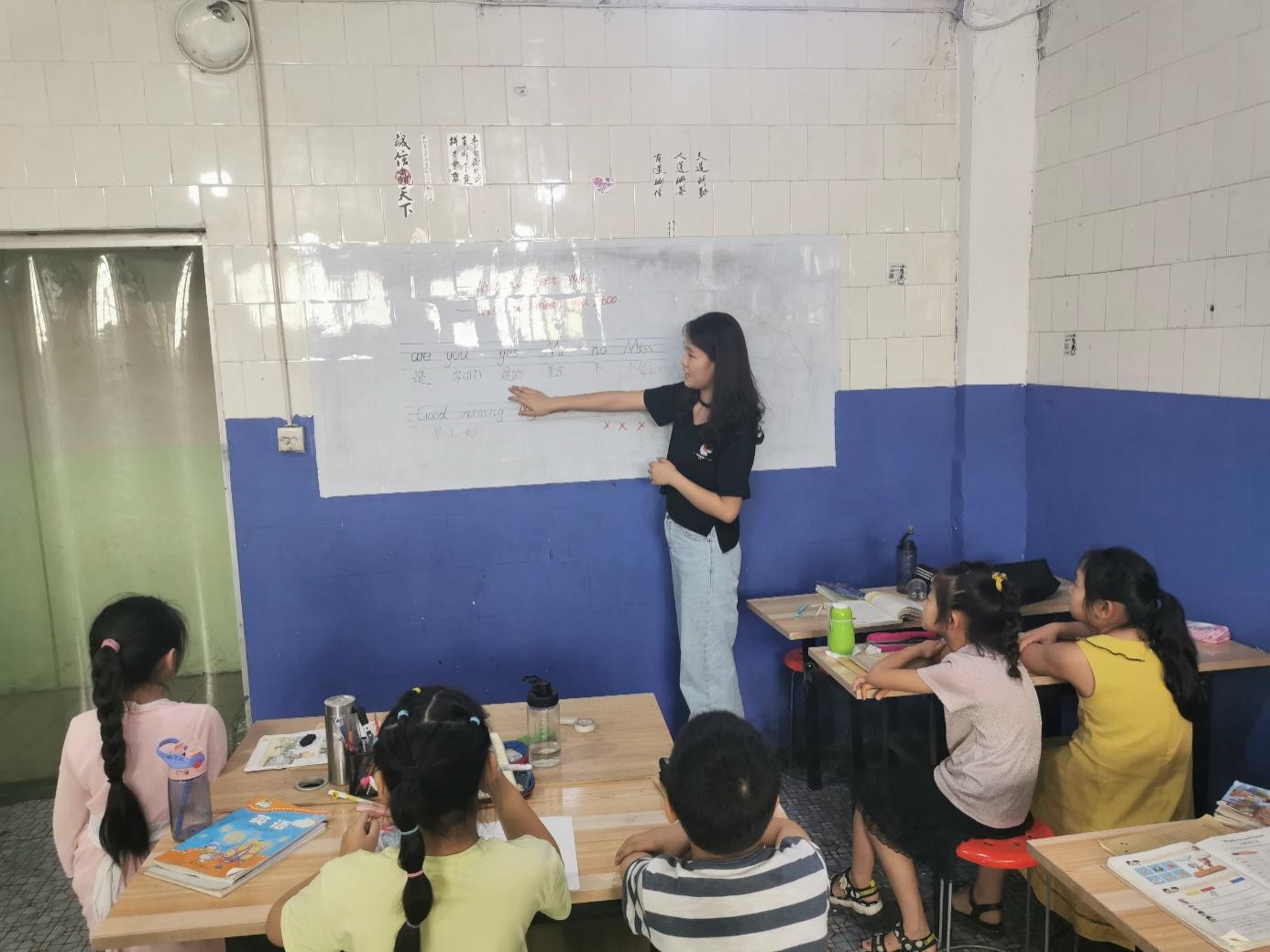 在暑假期间,团队成员开始投身进入教育行业。通过在教育行业实践丰富自己对社会基层教育情况的认知,以便于将来毕业之后能更好的融入社会。因为疫情的原因,团队成员在开始实践活动之前就做好了对疫情的防护工作以及对单位防疫情况的了解以保障人身安全。在基层的教育工作中,团队成员给小员工同学进行功课补习,在与他们接触之后才知道了基层教育的条件很是艰巨,他们用的是以前那种老式黑板,让我们更深入的了解到农村的教育情况的艰辛。