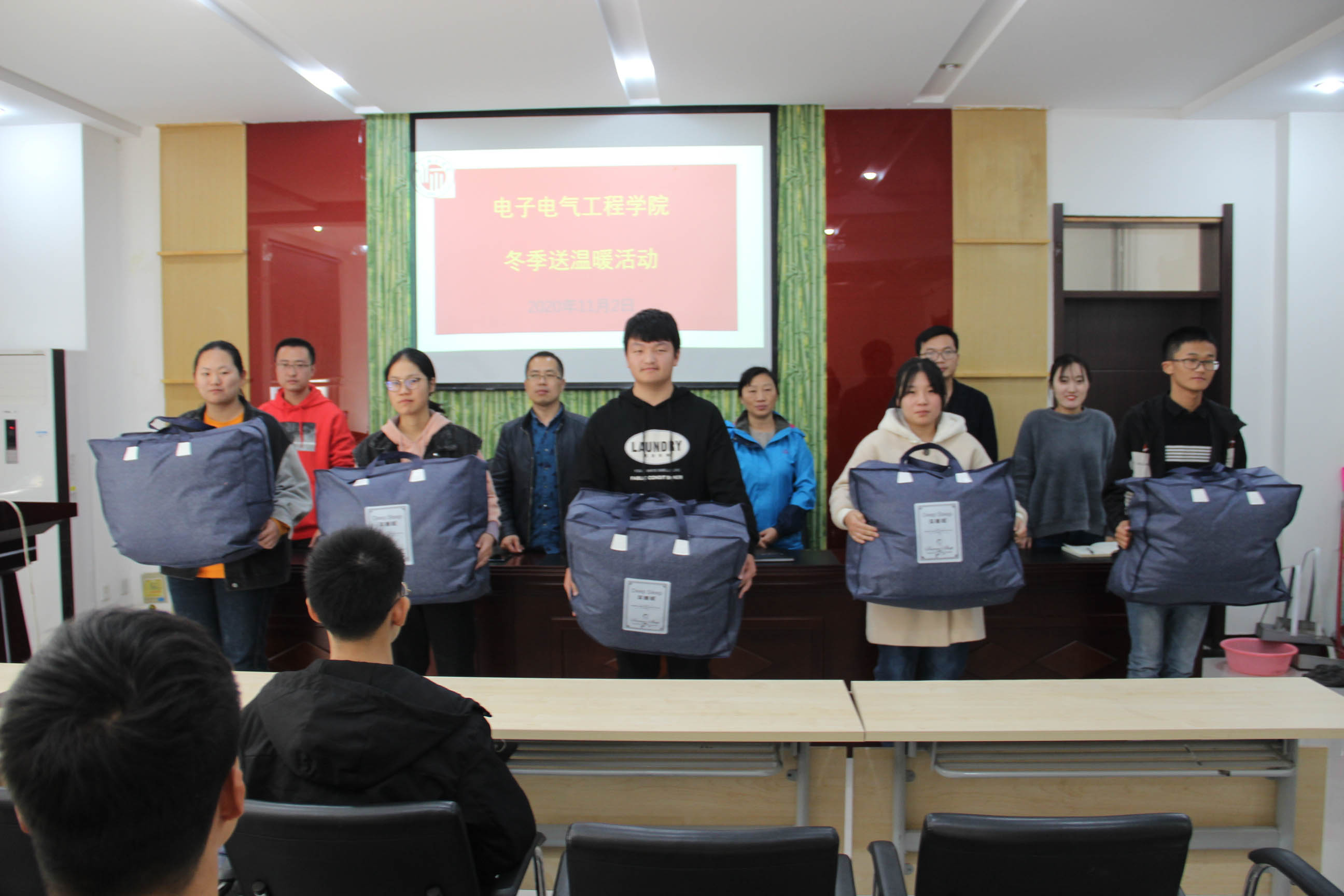 活动伊始,张涵向各位受资助的员工介绍公司内的资助政策,国家、公司通过各种渠道实际的解决经济困难员工生活中的实际问题,接着张凯鼓励各位员工不怕困难,努力奋斗并宣读领取棉被的人员名单,之后,姚晓惠表示,公司关心、关爱每个员工的成长成才,员工们在遇到困难时可以积极寻求公司的帮助,坚定信念,渡过难关,同时也要心怀感激,传递温暖,不辜负家人的期望和社会的关爱。同学们纷纷表示感谢国家及公司给予的帮助与温暖,定会刻苦学习,用实际行动回报社会和祖国的亲切关怀。活动最后,张涵对本次活动进行了总结,叮嘱同学们注意保暖,学好专业知识,把党和国家以及公司的关爱传递下去。