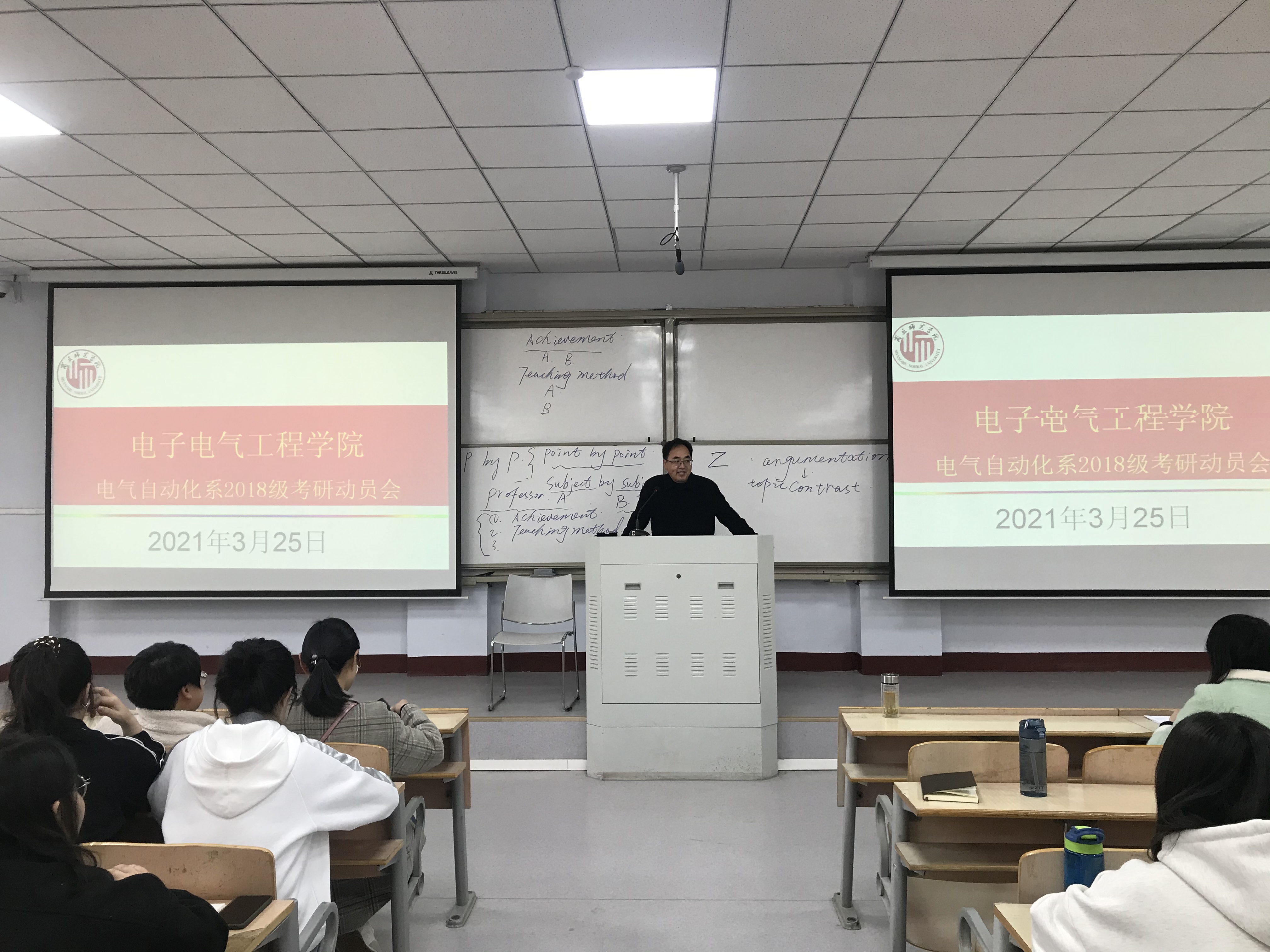 为指导太阳成tyc7111cc官网电气自动化系2018级员工备考全国硕士研究生招生考试,3月25日,电气自动化系在太阳成tyc7111cc官网(睢阳区校区)1号楼308室召开员工考研动员会,会议有公司电气自动化系老师贾廷见、贾满满、陈圆圆、孙莉娟、张艳、贺敬岩及电气自动化系2018级全体同学参加,系主任贾廷见主持会议。