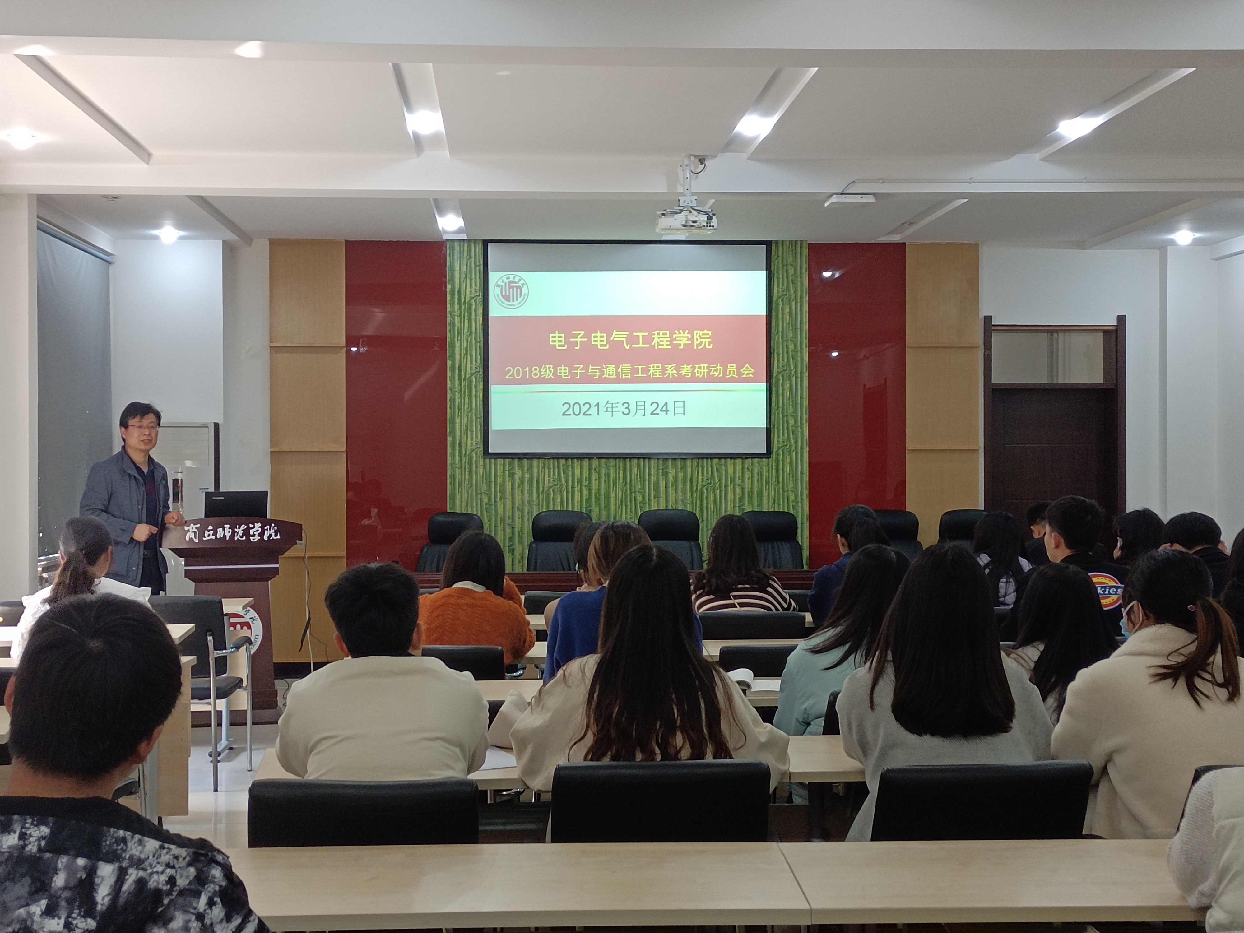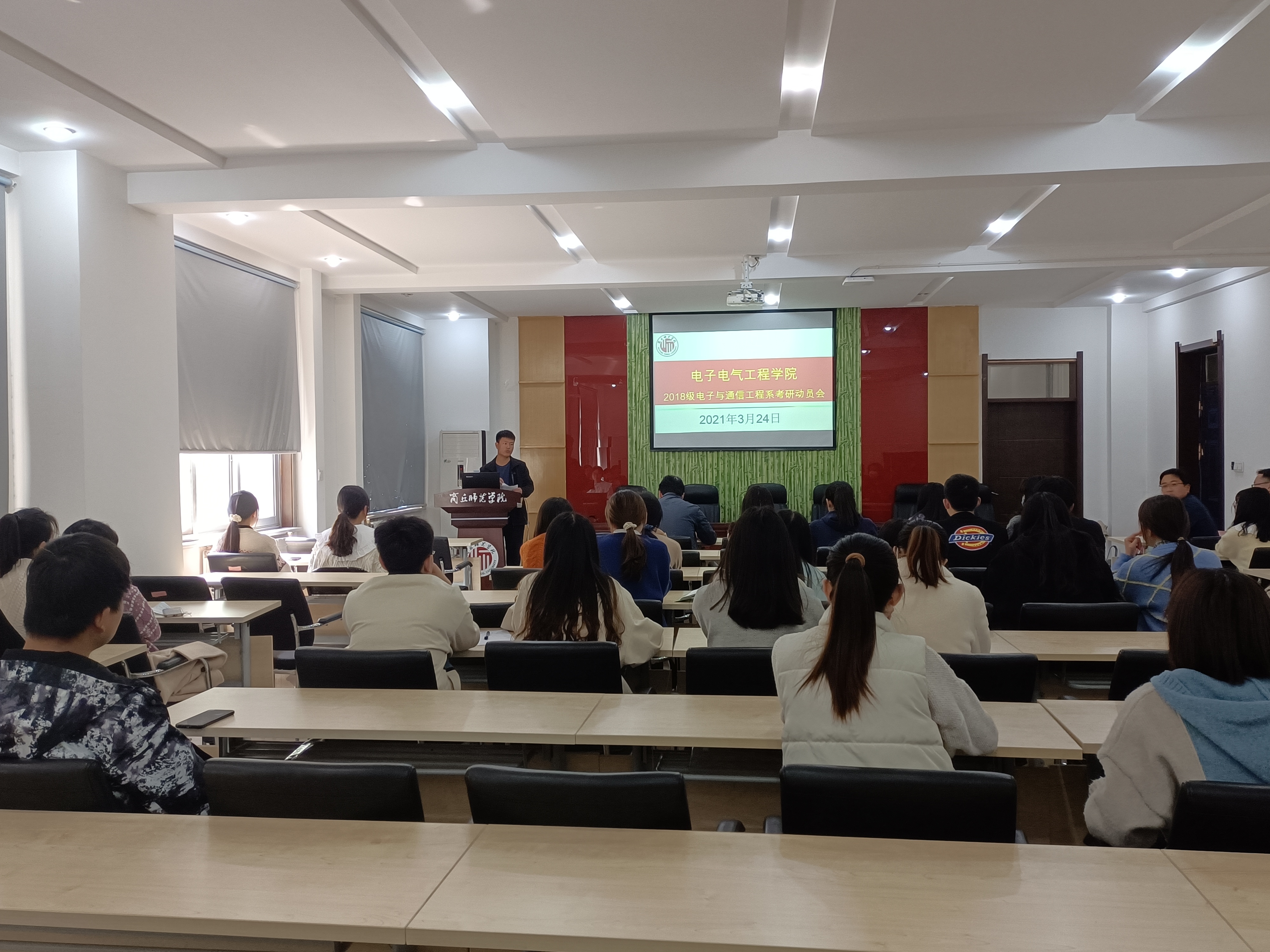 马绍朔老师侧重通信工程专业作了考研动员,给员工分析了当前通信工程专业考研基本形势,通信工程专业考研方向有哪些,各个方向的人才培养目标和就业方向。同学们如何正确选择报考院校和专业。并建议同学们既不好高骛远,也不妄自菲薄,要后期把握调剂机会,不要轻言放弃,要坚定信心,持之以恒。贾廷见老师向同学们分析了当前工科专业考研基本形势,考研与就业的关系,当前公司选择和专业调剂的现状以及注意事项,鼓励同学们充分利用各种资源,早做准备。