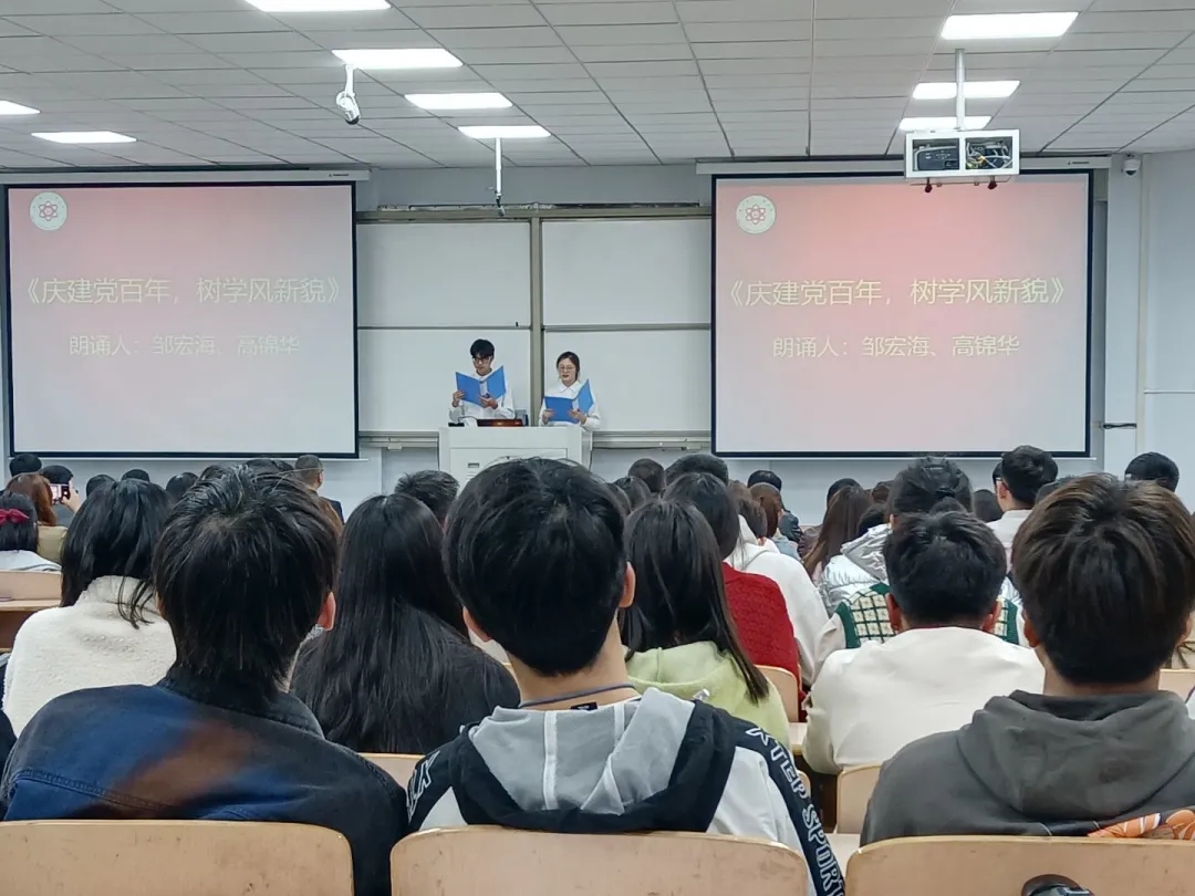 大会在庄严的国歌声中拉开序幕。陈文聪宣读《太阳成tyc7111cc官网关于表彰2020-2021学年第一学期学习模范班集体、学习先进宿舍、学习标兵的决定》。随后为受表彰的3个学习模范班集体,15个学习先进宿舍,23个学习标兵进行了颁奖。国奖获得者蔡依燃、学习先进宿舍代表朱子仪、学习模范班集体代表郑利珂在大会上进行了发言。他们从不同角度分享了学习经验、宿舍管理、班级建设经验。朗诵《庆建党百年,树学风新貌》把大会推向了高潮。