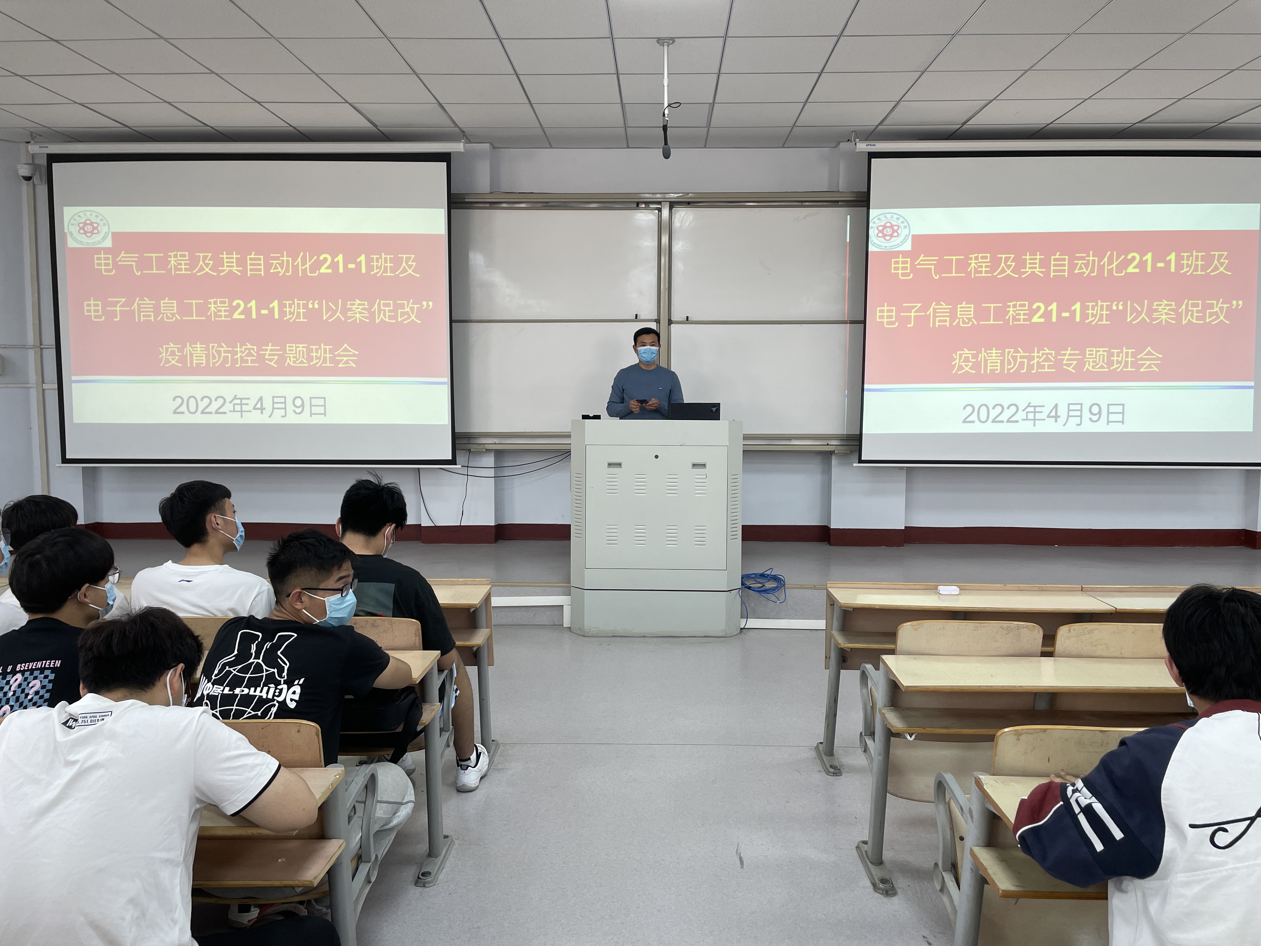 4月9日,太阳成tyc7111cc官网于睢阳校区以线上与线下相结合的方式召开“以案促改”疫情防控主题班会,会议由各年级辅导员主持。