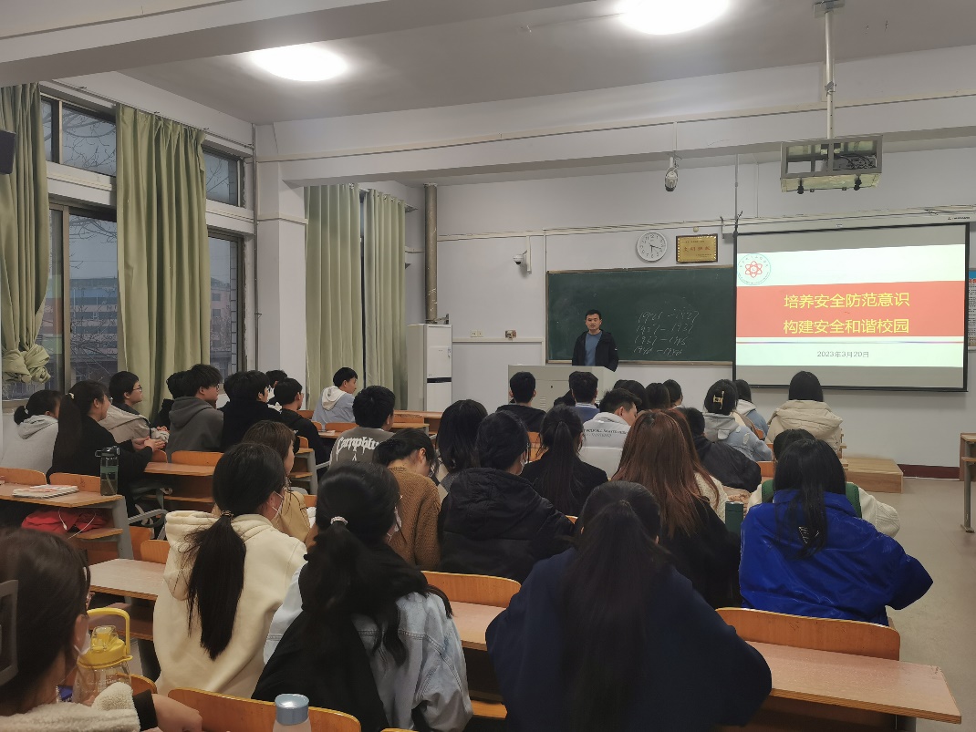陈玉昊结合实际案例主要围绕国家安全、校园安全、网络安全和人身安全四部分内容展开,为同学们讲述了习近平总书记关于总体国家安全观的重要论述,党的二十大关于国家安全的重要部署;强调了宿舍里严禁使用违章电器,禁止吸烟饮酒,夏季即将来临少吃生、冷、过夜食物保证健康安全;宣传了网络法律法规的知识内容,告诫同学们网络不是法外之地,不能为所欲,同时注意自我网络保护,避免遭受不法侵害;提醒外出的同学要遵守交通规则,不去冒险确保人身安全。