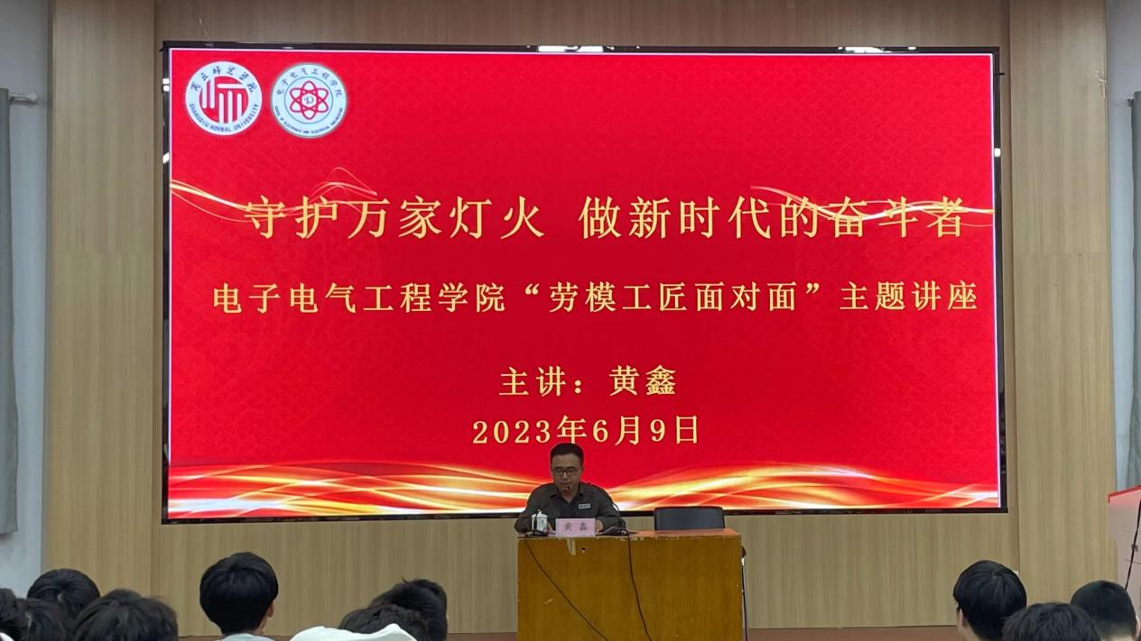 讲座上,黄鑫以“守护万家灯火 做新时代的奋斗者”为主题,结合自身20多年的奋斗历程,用朴实无华的语言讲解作为一名一线员工如何践行工匠精神,用实际行动干一行、爱一行、钻一行、精一行。他认为,作为一名新时代的劳模,不仅要做好本职工作,而且要精通熟练、积极探索、勇于创新,弘扬劳模精神、工匠精神,争当新时代的大国工匠。