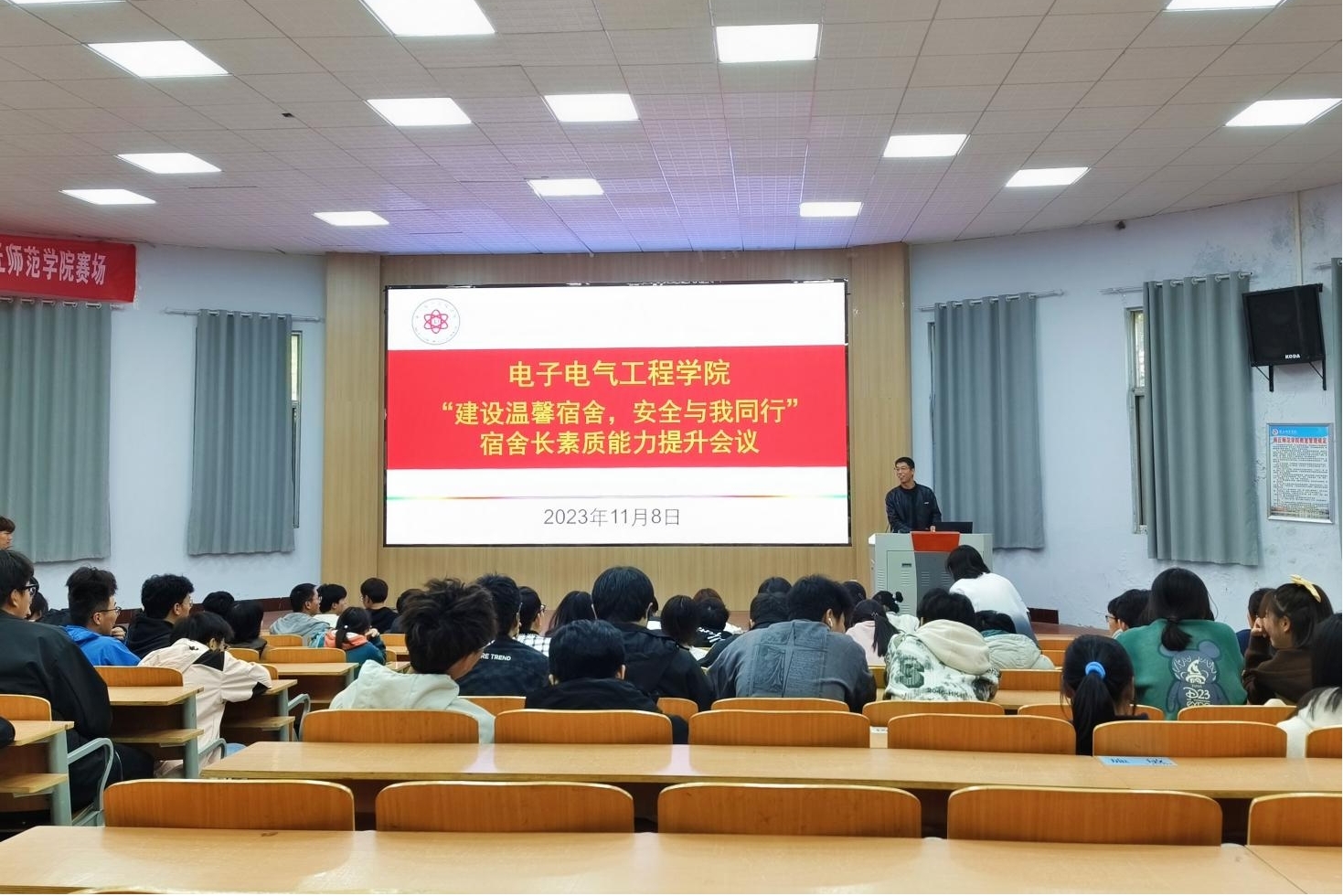 11月8日,公司在报告厅召开“建设温馨宿舍,安全与我同行”宿舍长素质能力提升会议,由辅导员马煊贺主持,2023级全体宿舍长参加本次会议。