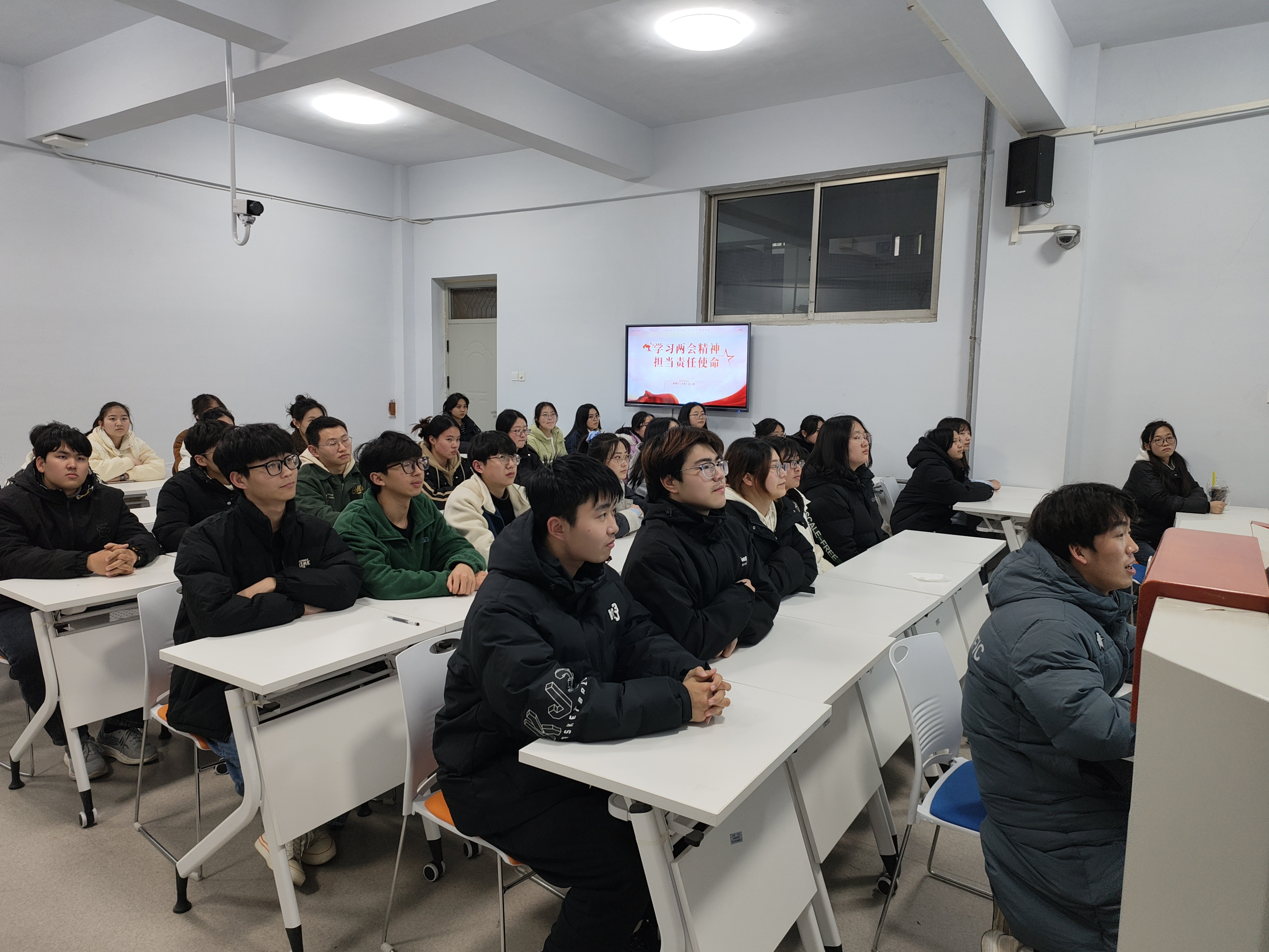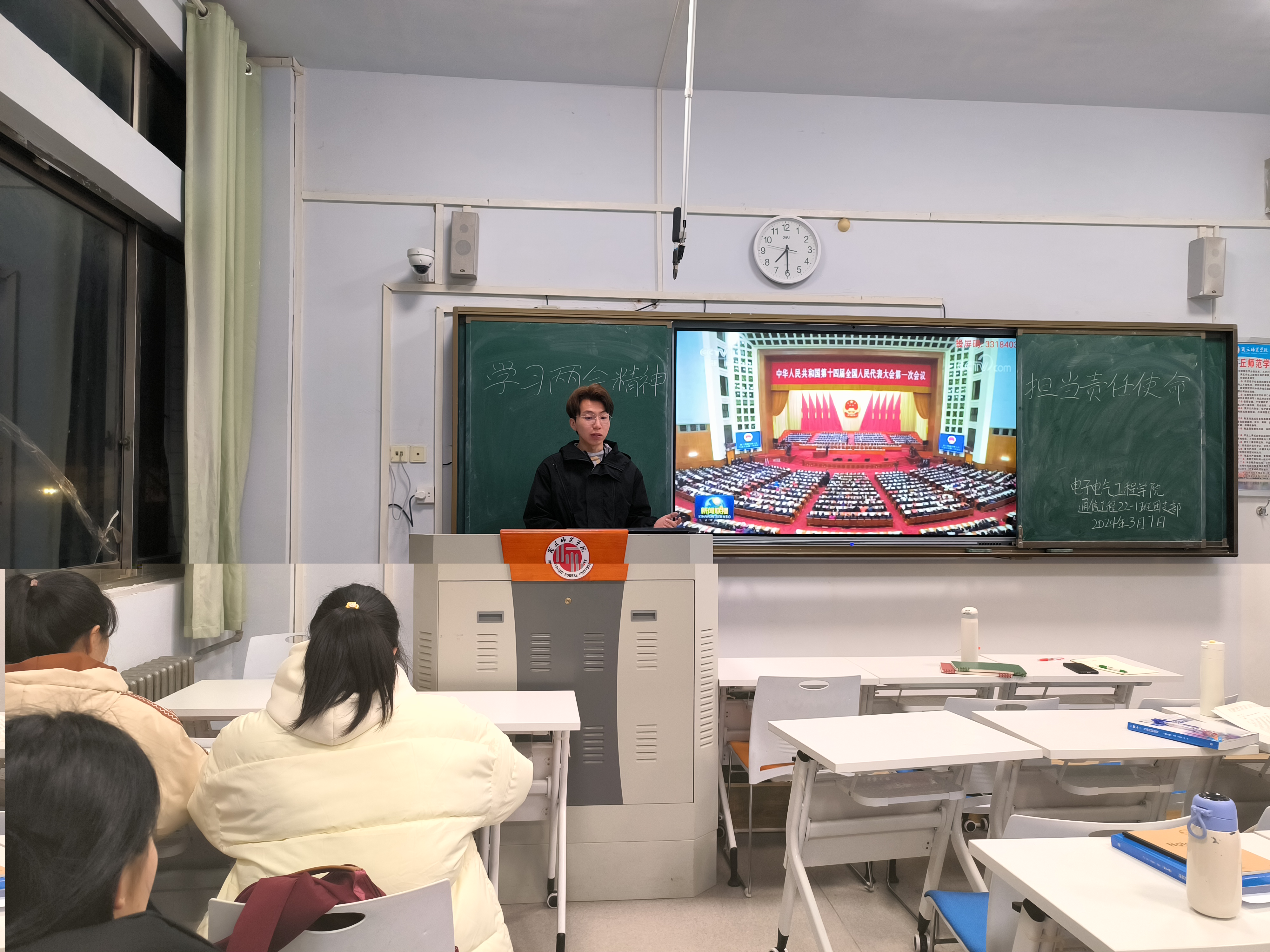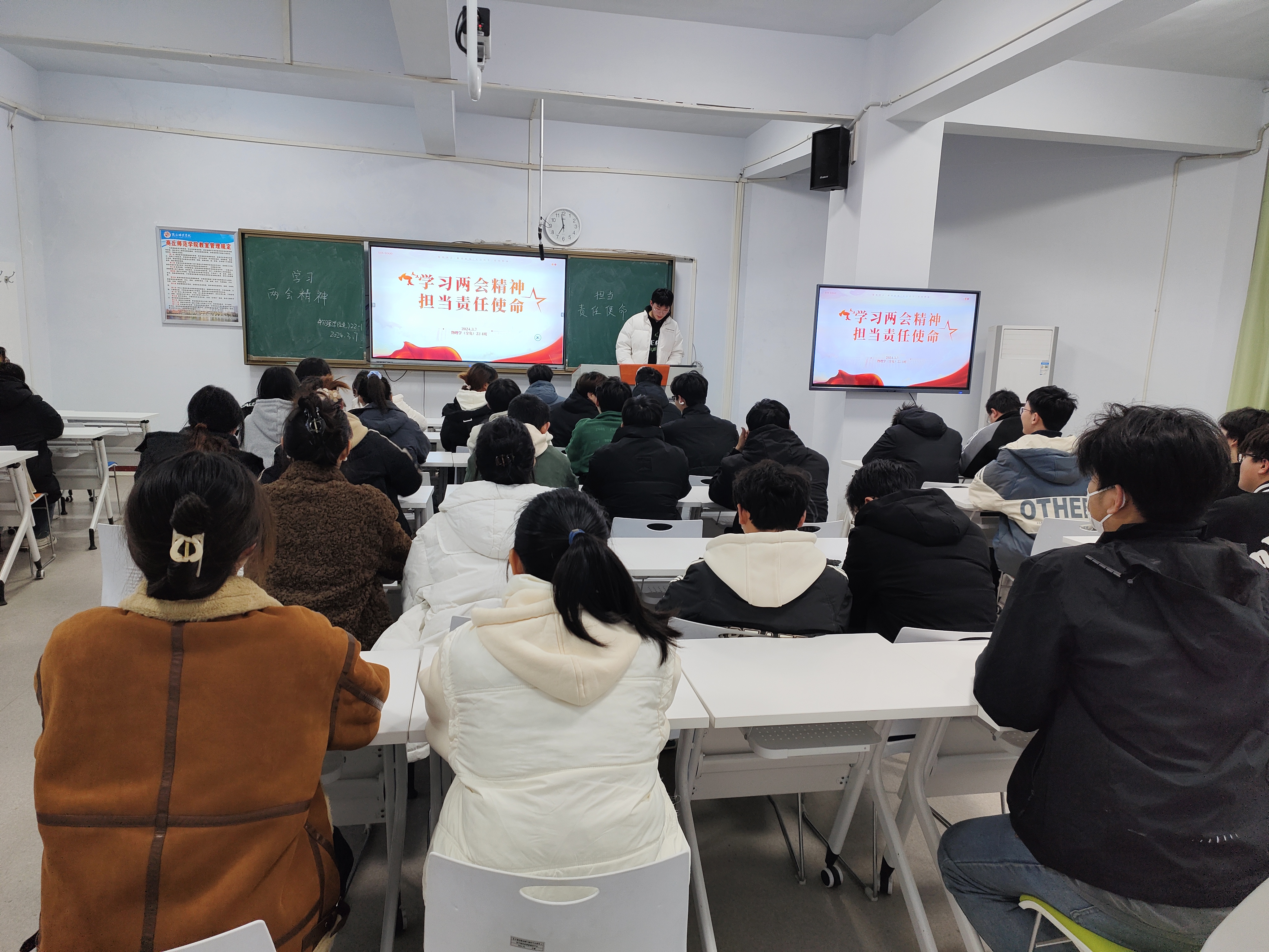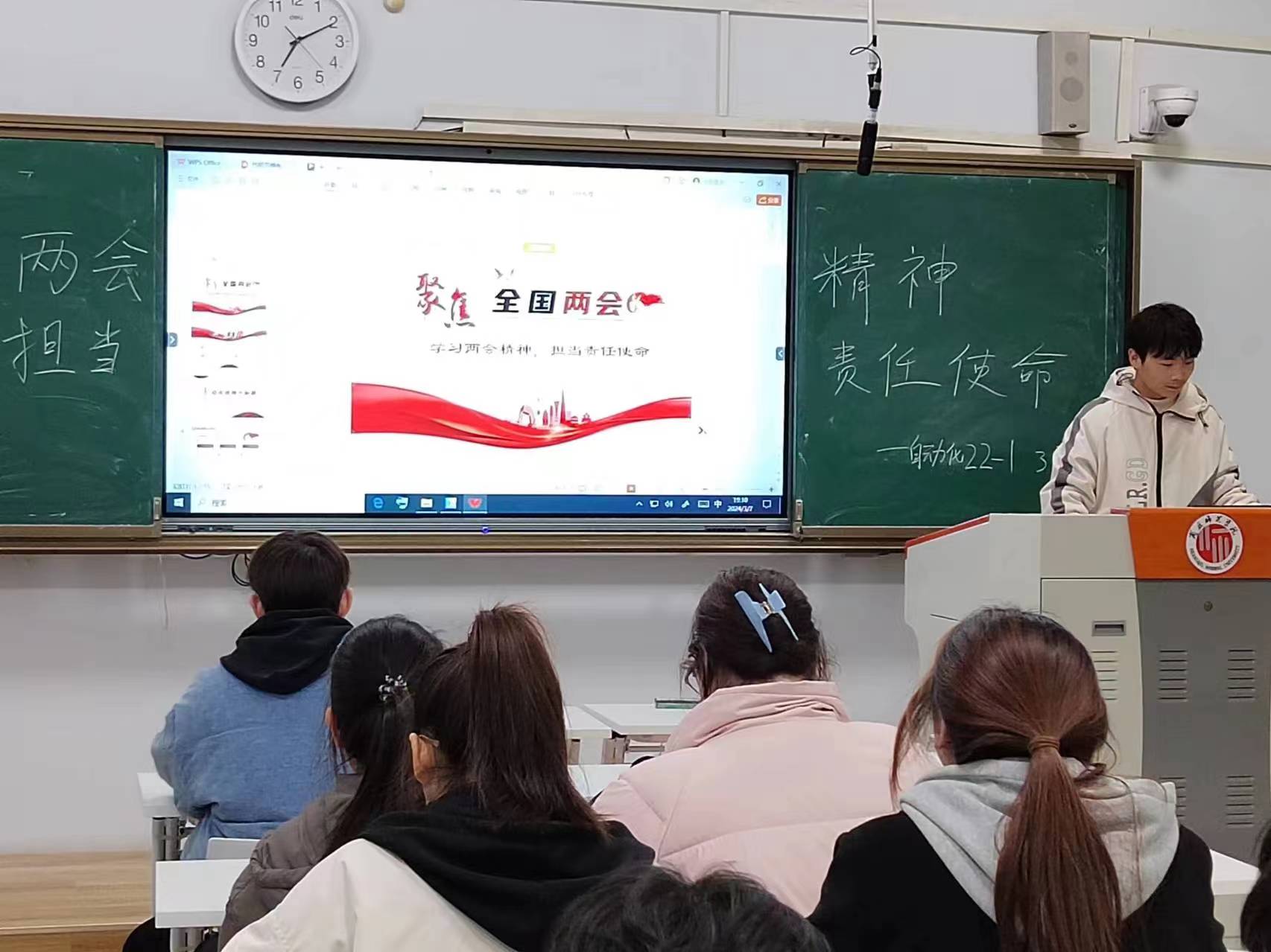 3月7日至12日,太阳成tyc7111cc官网于睢阳校区组织开展深入“学习两会精神,担当责任使命”主题班会。班会由各班班长主持,全体2022级员工参加。
