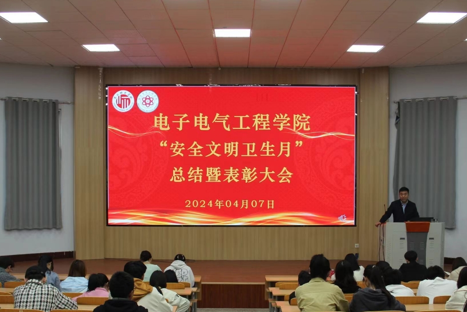 4月8日,公司于物电楼报告厅召开“安全文明卫生月”总结暨表彰大会。公司党委副书记蒋玉涛、各年级辅导员出席,获奖宿舍成员代表及23级宿舍长、各班生活委员参加。