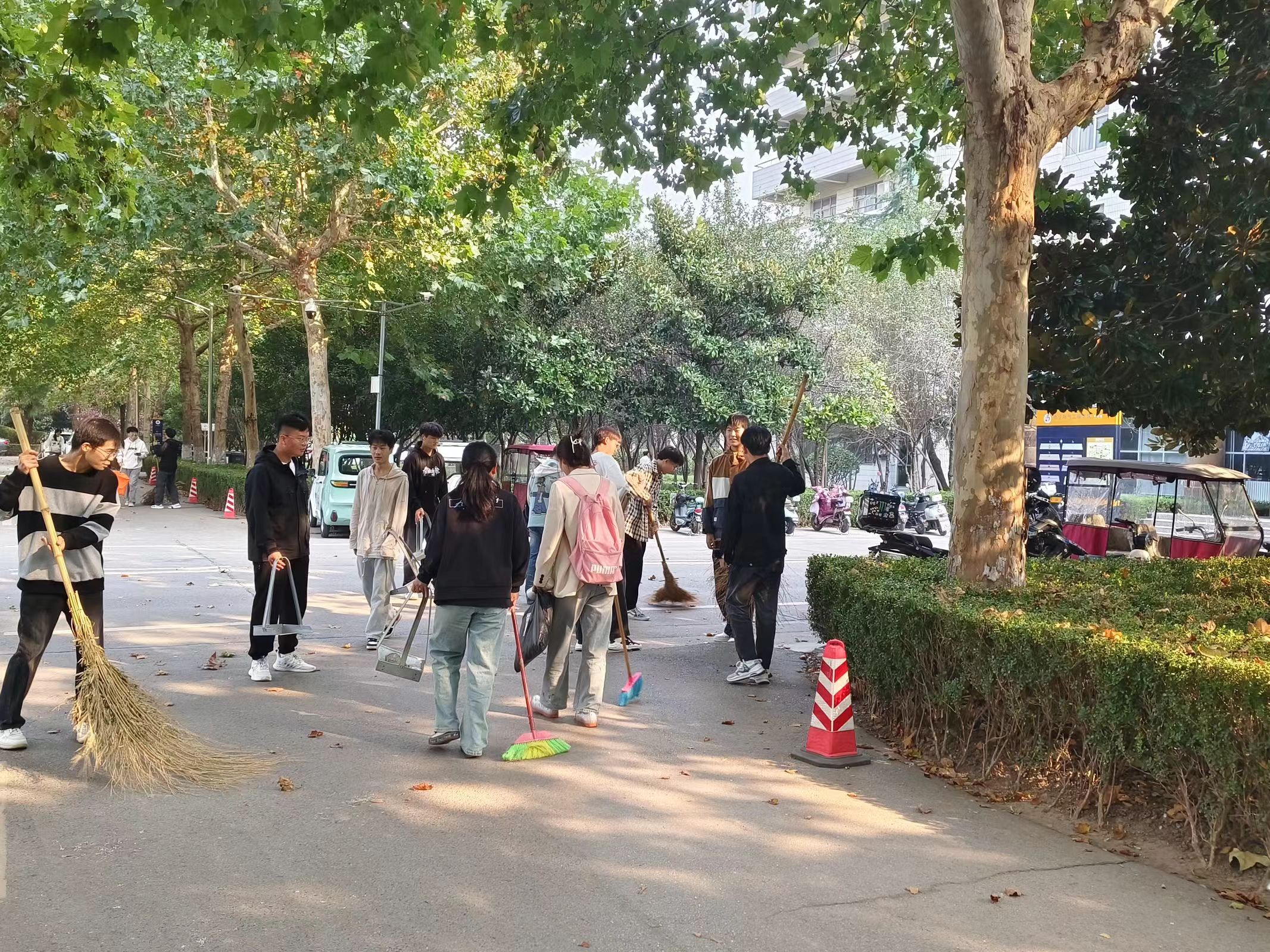 活动开始前,报名参加活动的同学在物电楼前集合,认真听取此次活动的意义和注意事项,明确了活动开展的范围。活动中,同学们拿起扫把、簸箕等劳动工具按照分配的区域认真进行打扫,清扫了路边的垃圾与散落的树叶等。同学们集体协作、合理分工、明确任务。最后参与活动的同学在此次活动的主题条幅上签名。