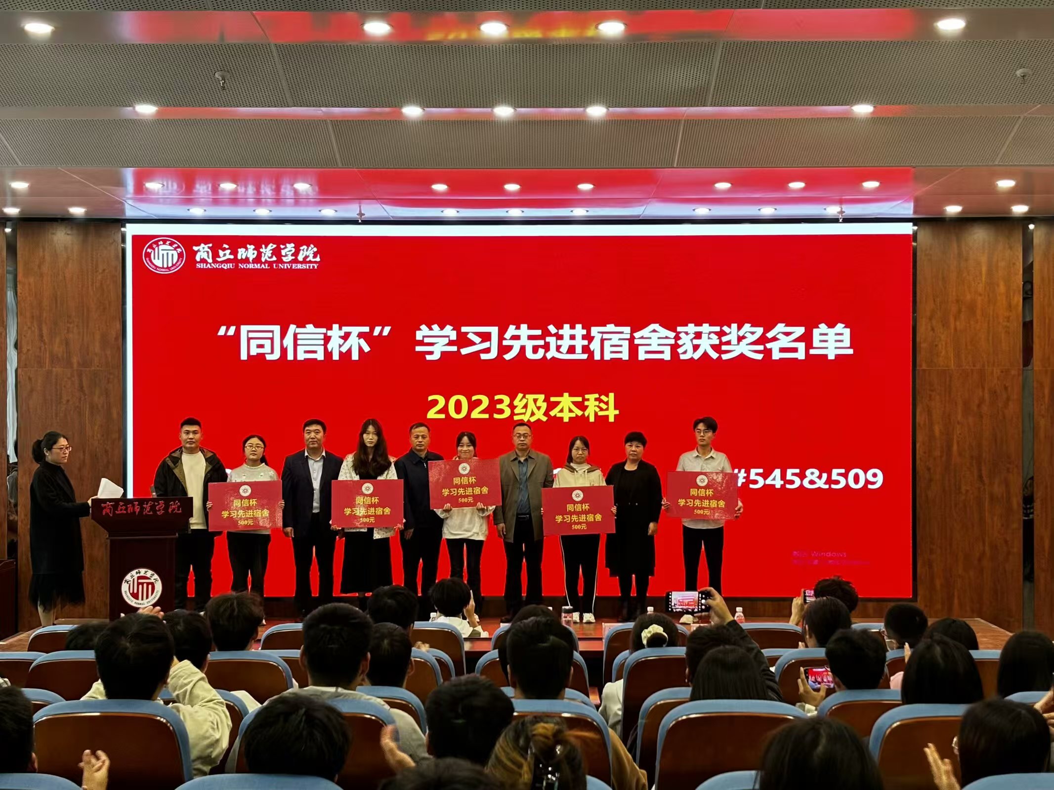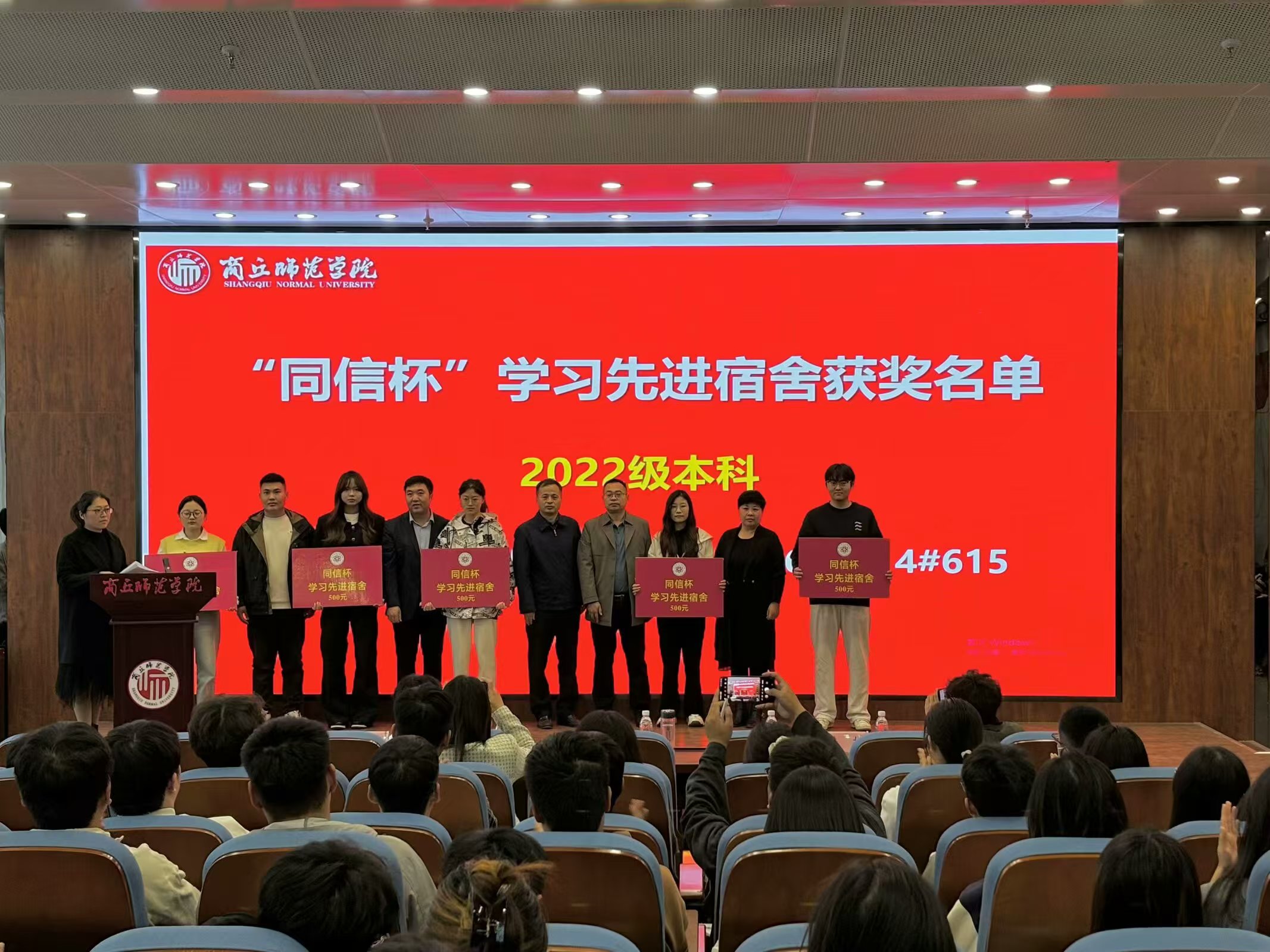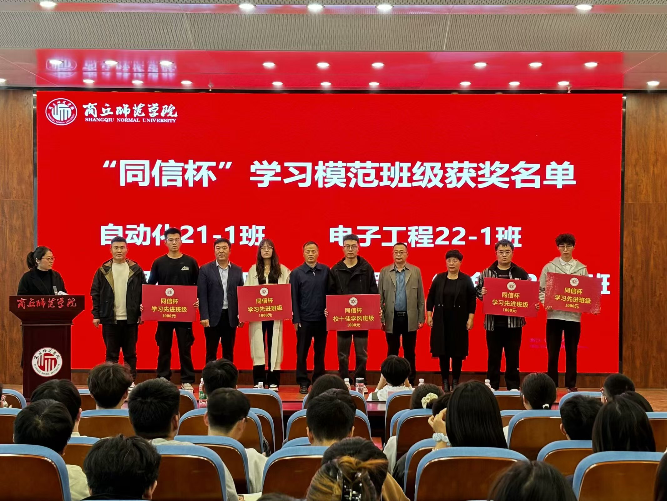 表彰大会在庄严的国歌声中拉开帷幕。蒋玉涛宣读《太阳成tyc7111cc官网关于表彰校级“十佳学风班级”的决定》和《太阳成tyc7111cc官网关于表彰第六届“同信杯”学风建设先进集体及个人的决定》。随后,颁奖嘉宾依次为获奖集体和个人颁奖。