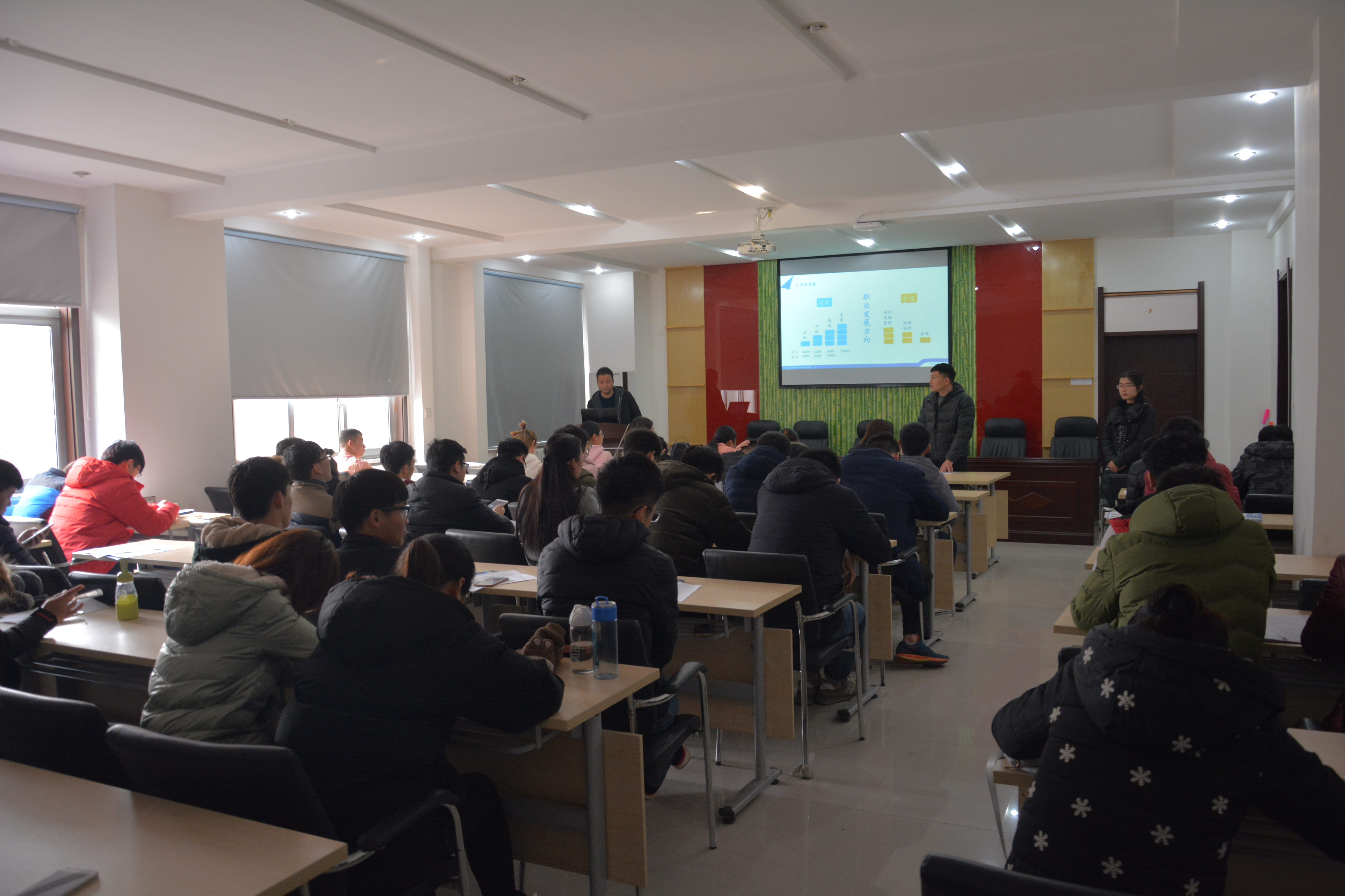 2018年1月10日在太阳成tyc7111cc官网实验楼208会议室召开离校前资助工作专题讲座,党总支副书记孔祥伟主持本次讲座为公司员工讲授相关资助知识。