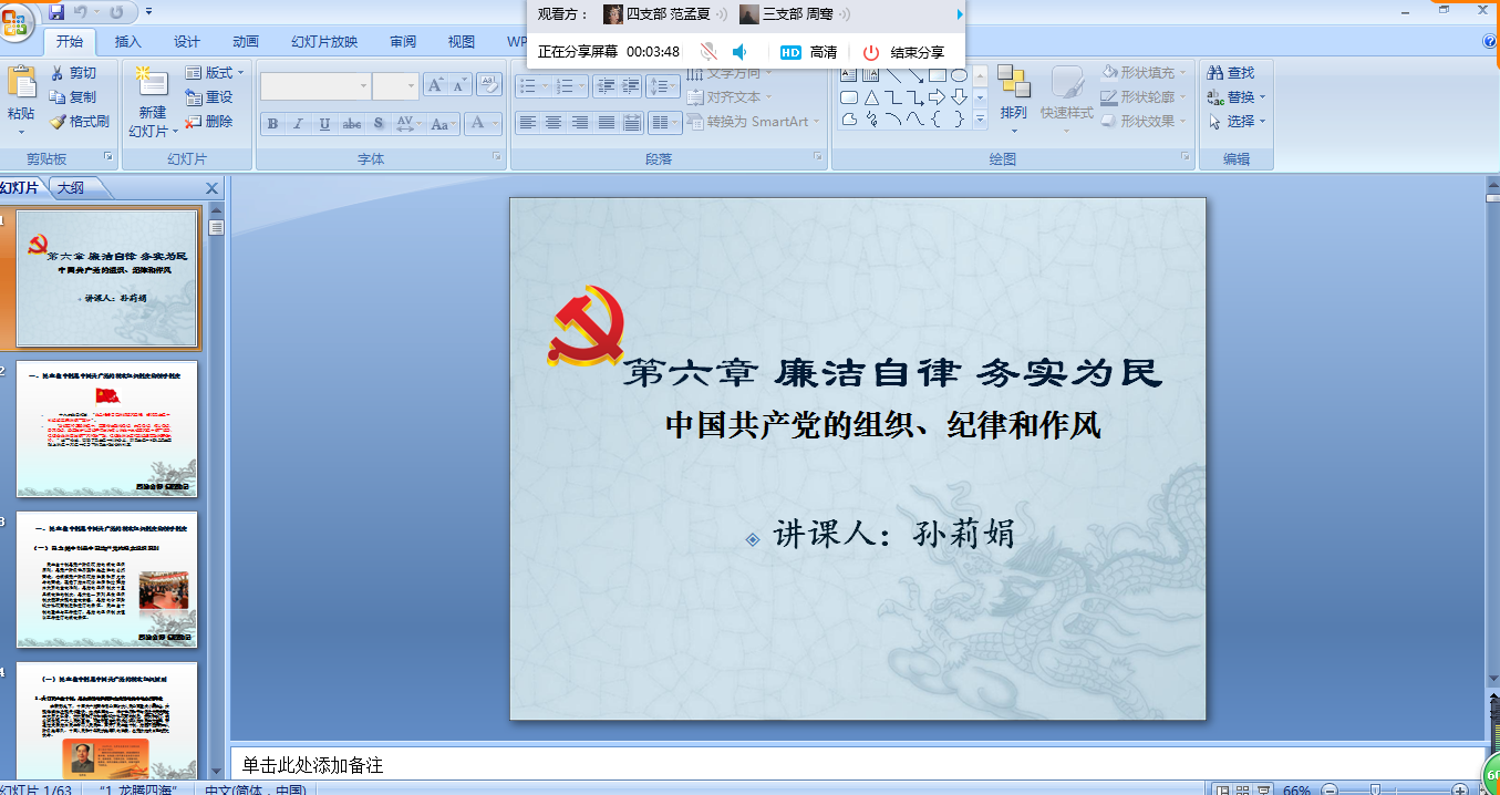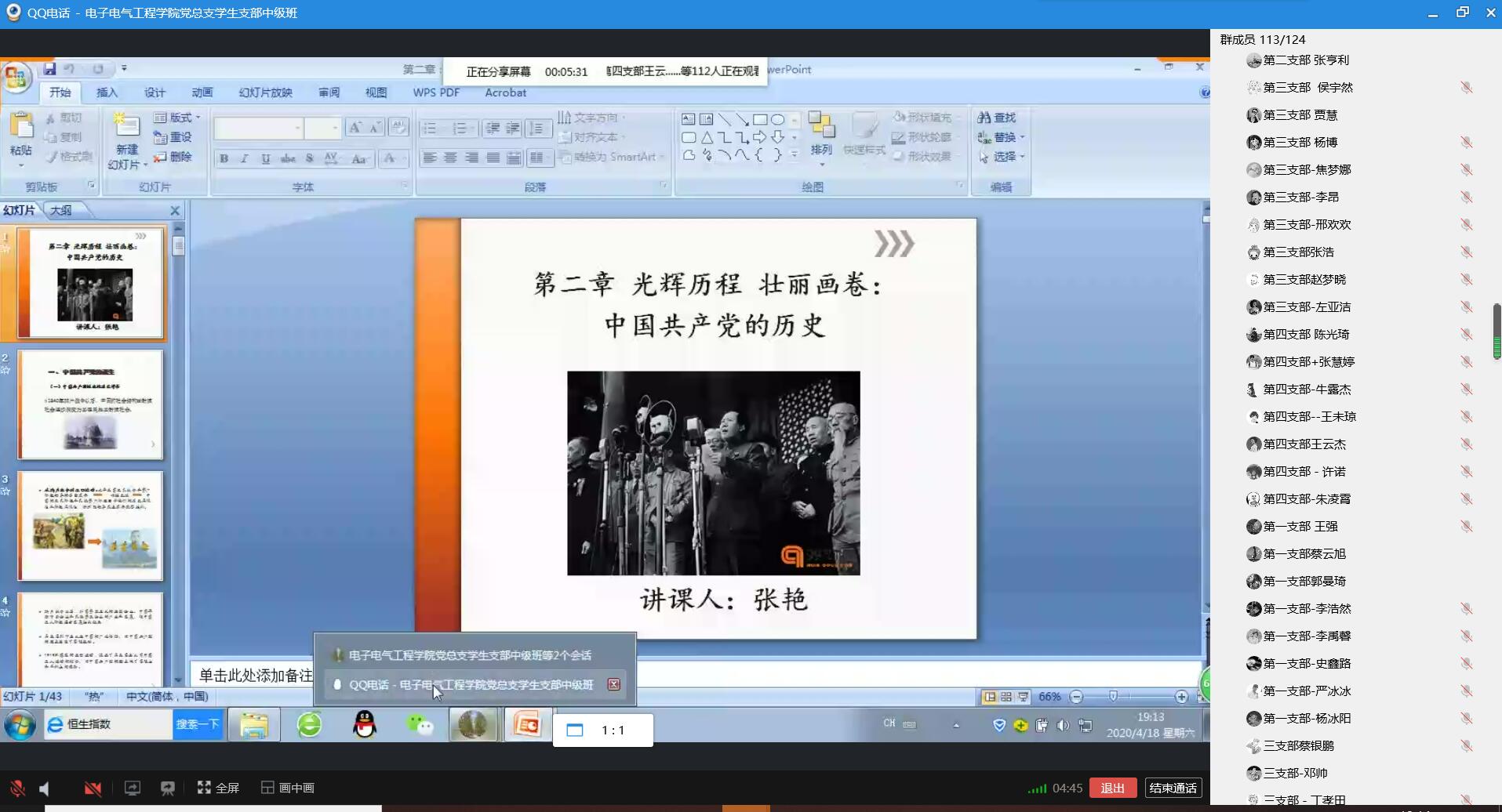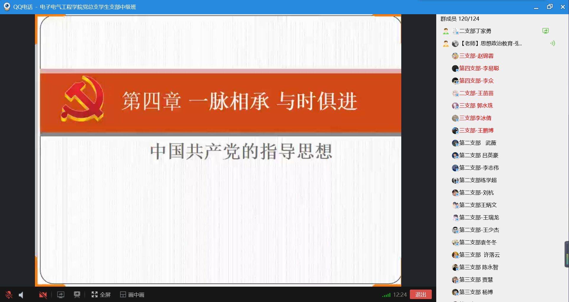 为加强入党积极分子思想政治教育,坚定共产主义理想信念,4月17-19日,公司党总支员工各支部书记分别为入党积极分子讲授党课,本次党课采取QQ网络会议形式。