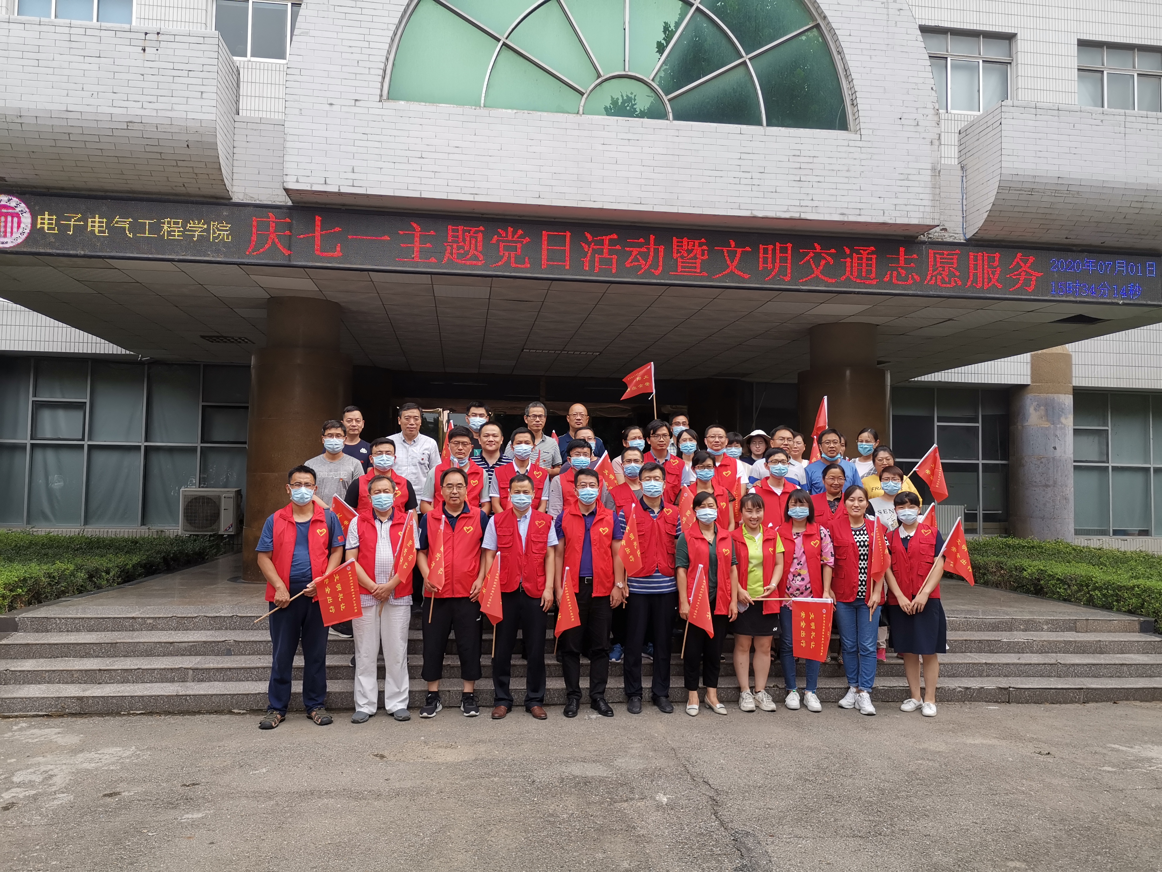 为庆祝中国共产党99华诞,7月1日,太阳成tyc7111cc官网开展“牢记初心使命,争当出彩先锋” 庆七一主题党日活动和文明交通志愿服务活动,全体教师党员参加了活动。