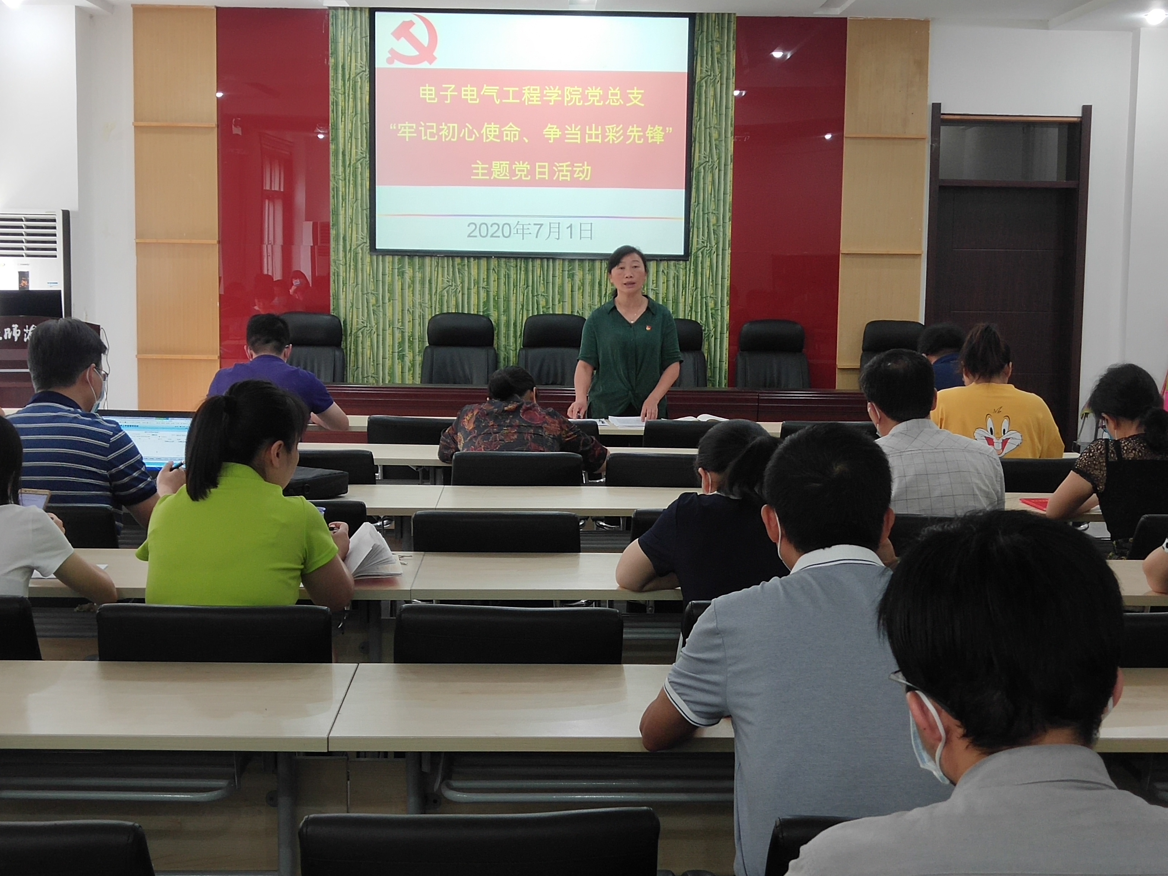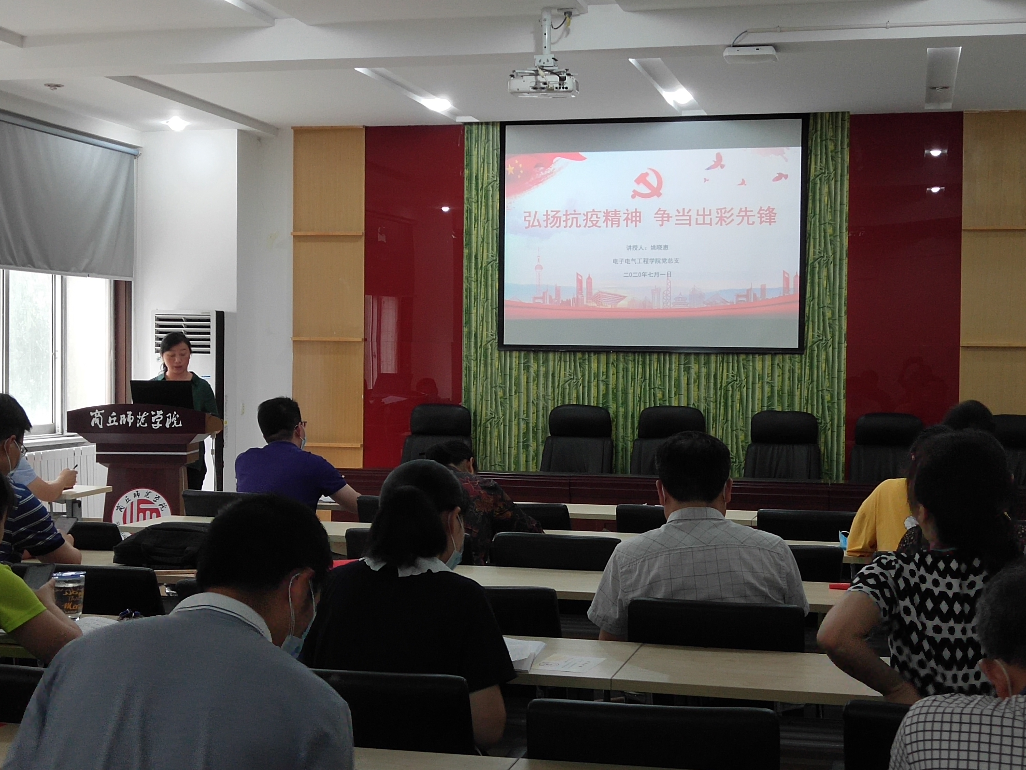 首先,党总支书记姚晓惠带领大家一起重温了入党誓词,通过重温誓词回顾了我们入党时的庄严承诺,提醒自己所肩负的神圣使命和责任,增强了共产党员的责任感和使命感;接着姚晓惠为全体党员讲授了题为《弘扬抗疫精神,争当出彩先锋》的专题党课,简要介绍了中国共产党的光辉历史,引导广大党员学习弘扬抗疫精神,牢记初心使命,立足本职岗位,争做出彩先锋。