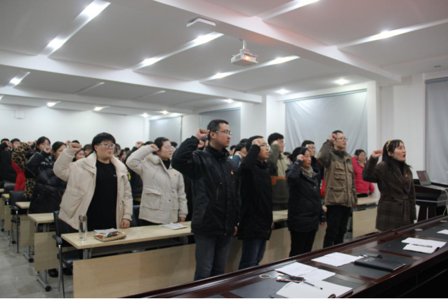 会议在《国歌》中圆满落幕。通过入党宣誓仪式,全体党员进一步提高思想觉悟,更加端正入党动机,增强党性观念。