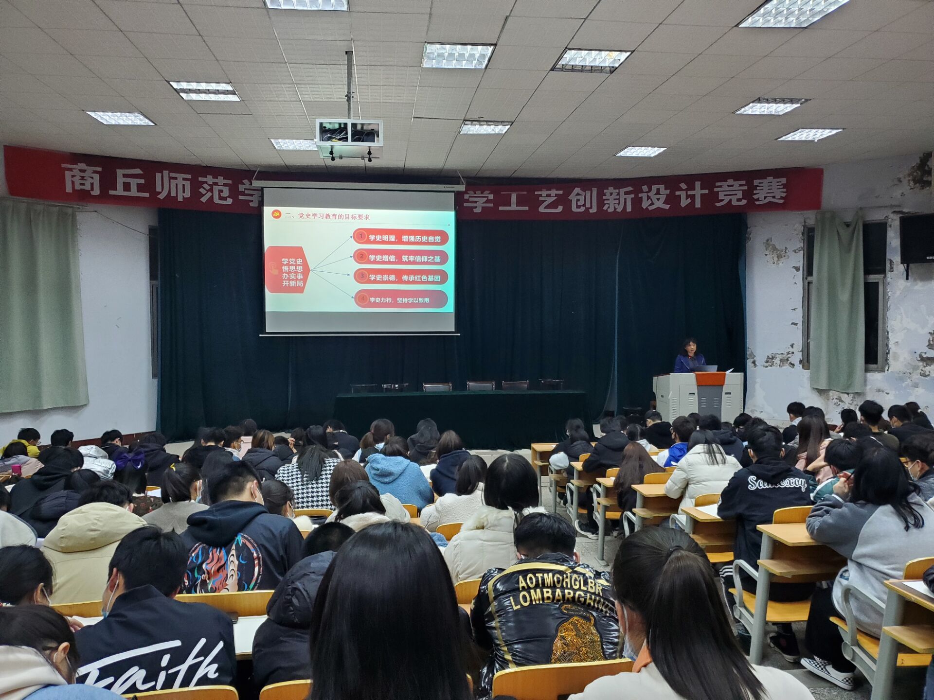姚晓惠从党史学习教育的重大意义、目标要求、中国共产党的发展历程、中国共产党人的初心和使命等方面阐述了一百年来中国共产党取得的伟大成就和原因。青年是祖国的未来,民族的希望,要学史明理、学史增信、学史崇德、学史力行,做有理想、有本领、有担当的社会主义建设者和接班人。