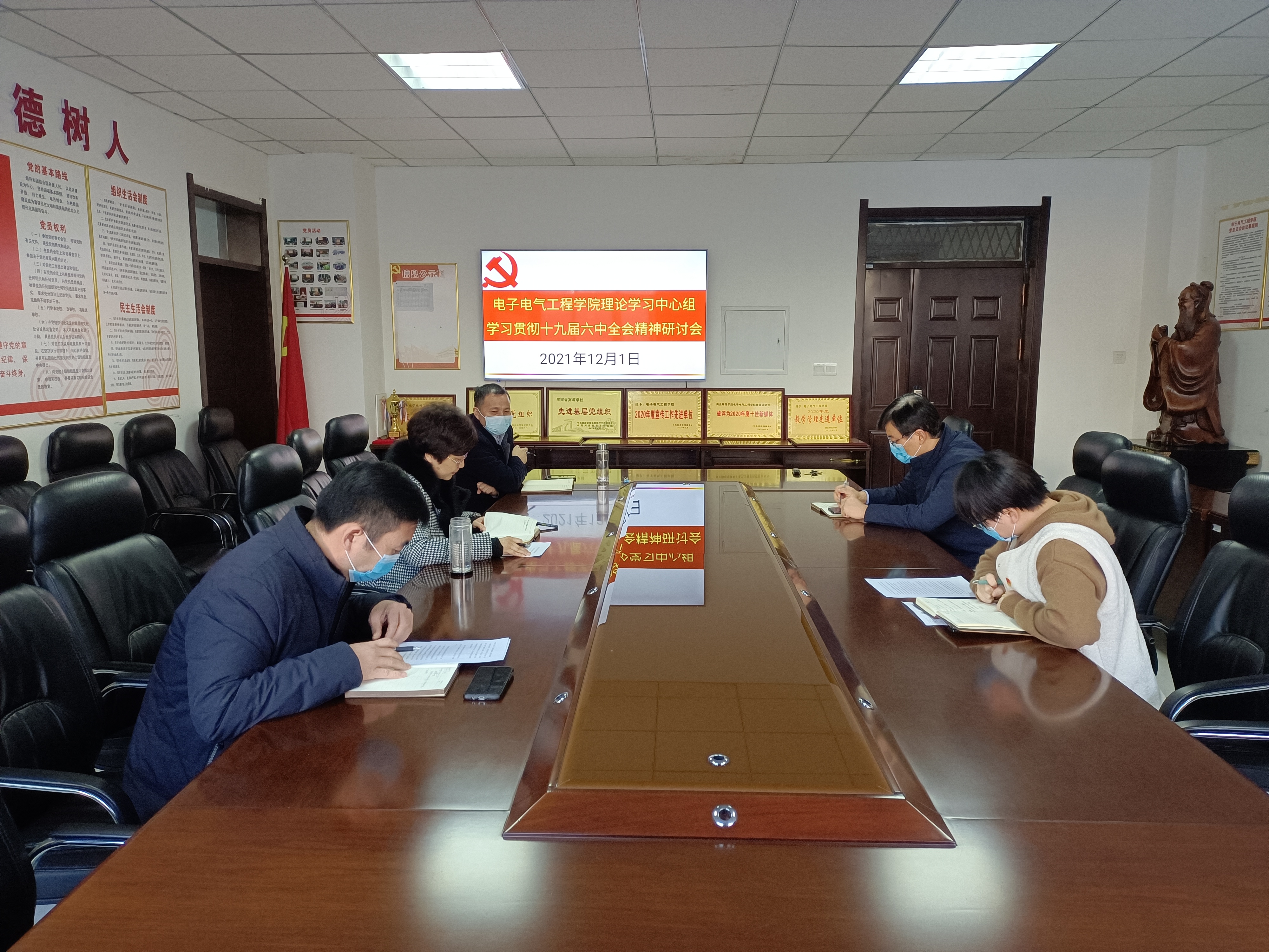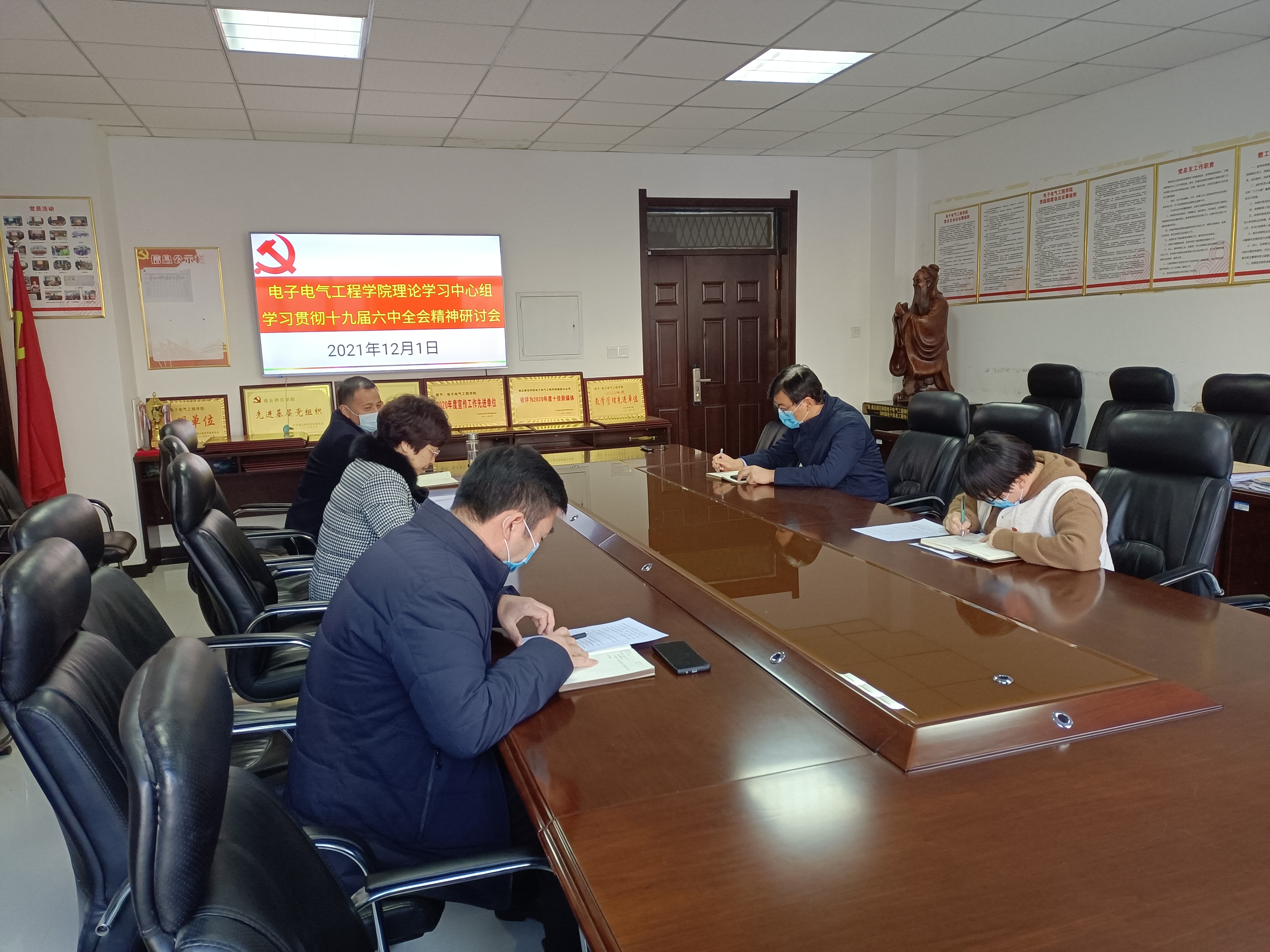 12月1日,太阳成tyc7111cc官网理论学习中心组在睢阳校区召开专题研讨会,深入领会学习党的十九届六中全会精神。