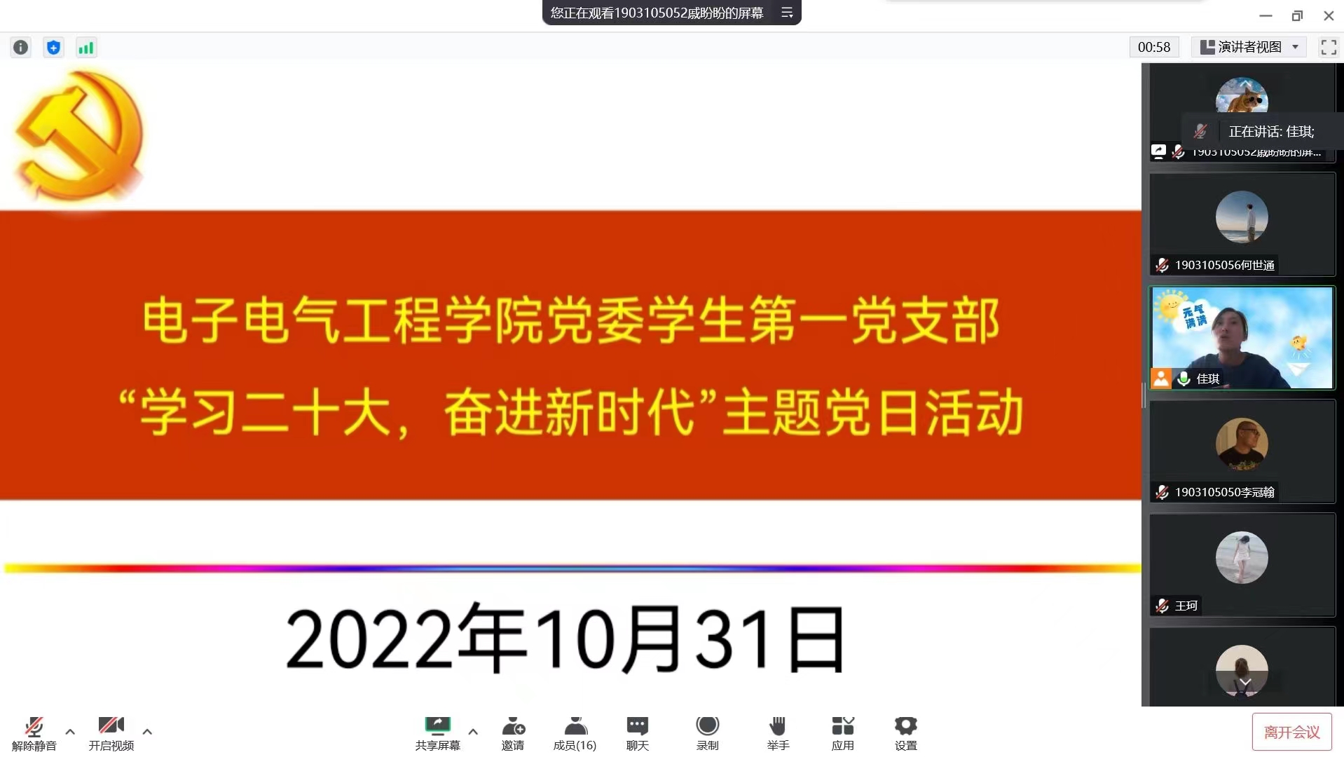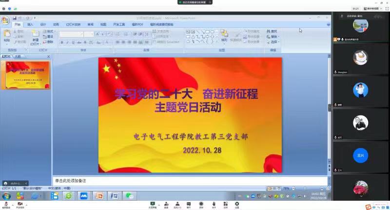 10月25日至10月31日,公司各党支部于线上相继开展“学习党的二十大,奋进新征程”主题党日活动,全体师生党员参加。
