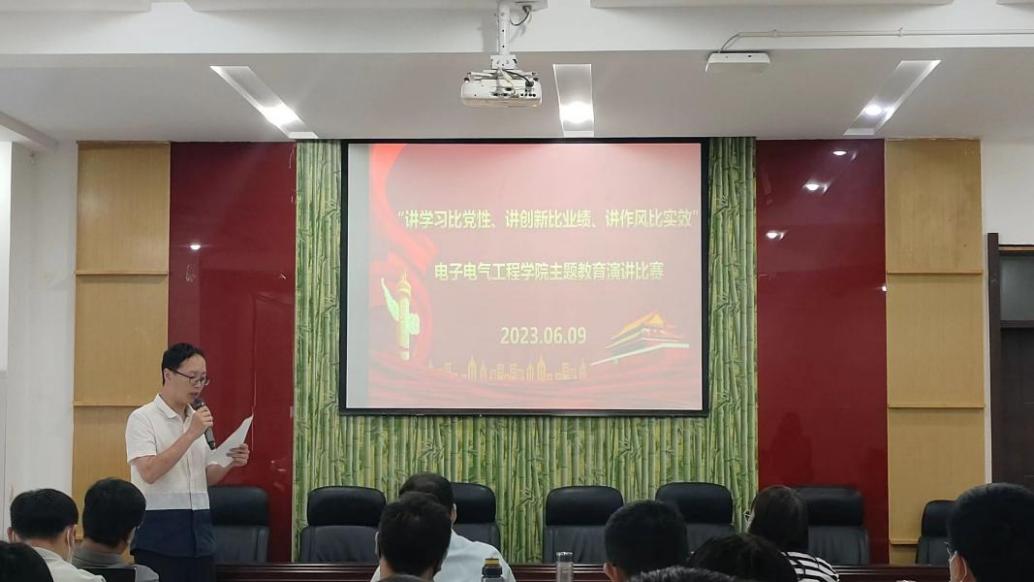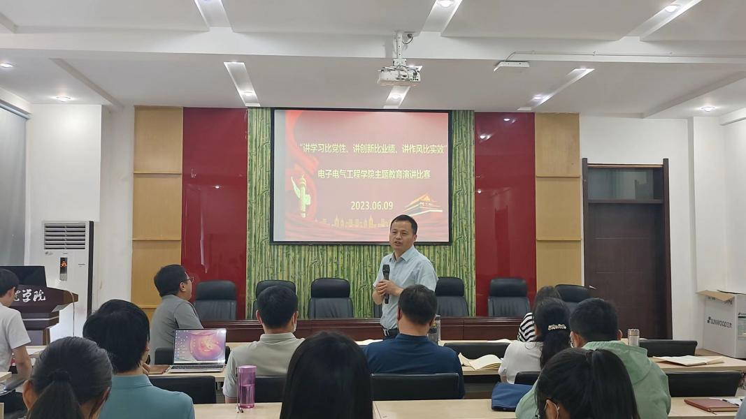 6月9日,公司党委在物电楼208开展“讲学习比党性、讲创新比业绩、讲作风比实效”主题教育演讲比赛。来自太阳成tyc7111cc官网四个教工支部的八名教师代表参赛,经理赵纲领、杨同辉老师和陈圆圆老师担任评委,全体教师党员观摩本次比赛。