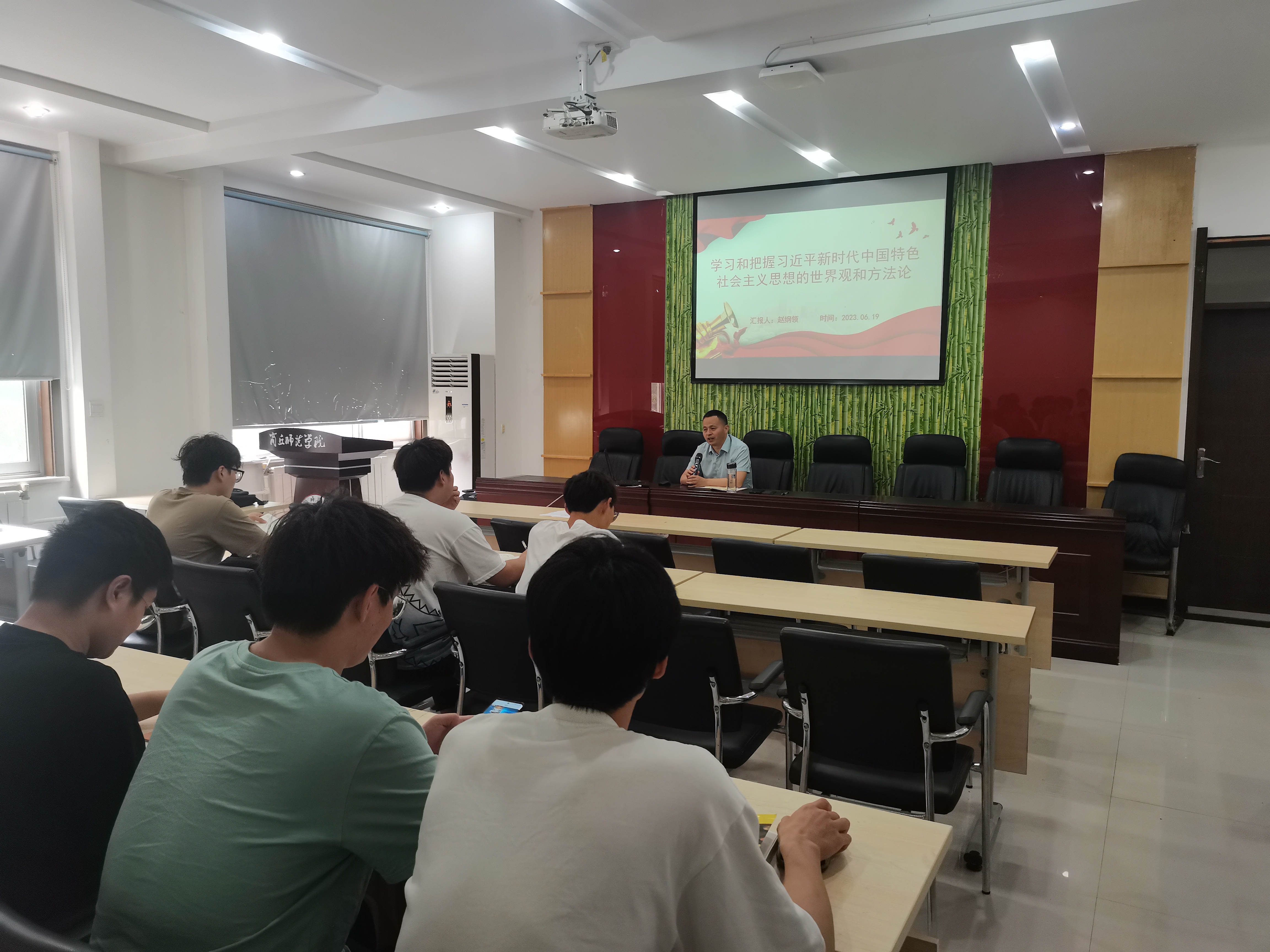 课上,赵纲领以《学习和把握习近平新时代中国特色社会主义思想的世界观和方法论》为题,对习近平总书记在党的二十大报告中提出的“六个必须坚持”进行详细阐述。他强调,“六个必须坚持”既蕴含着马克思主义人类解放的根本价值追求、与时俱进的理论品格、具体问题具体分析的活的灵魂、唯物辩证法的根本方法论、求真务实的实践观点、世界历史的人类关怀,又体现着中华优秀传统文化中民为邦本、守正出新、与时偕行、自强不息、开物成务、知行合一、天下大同的中国智慧,是一个有机的统一的系统整体。