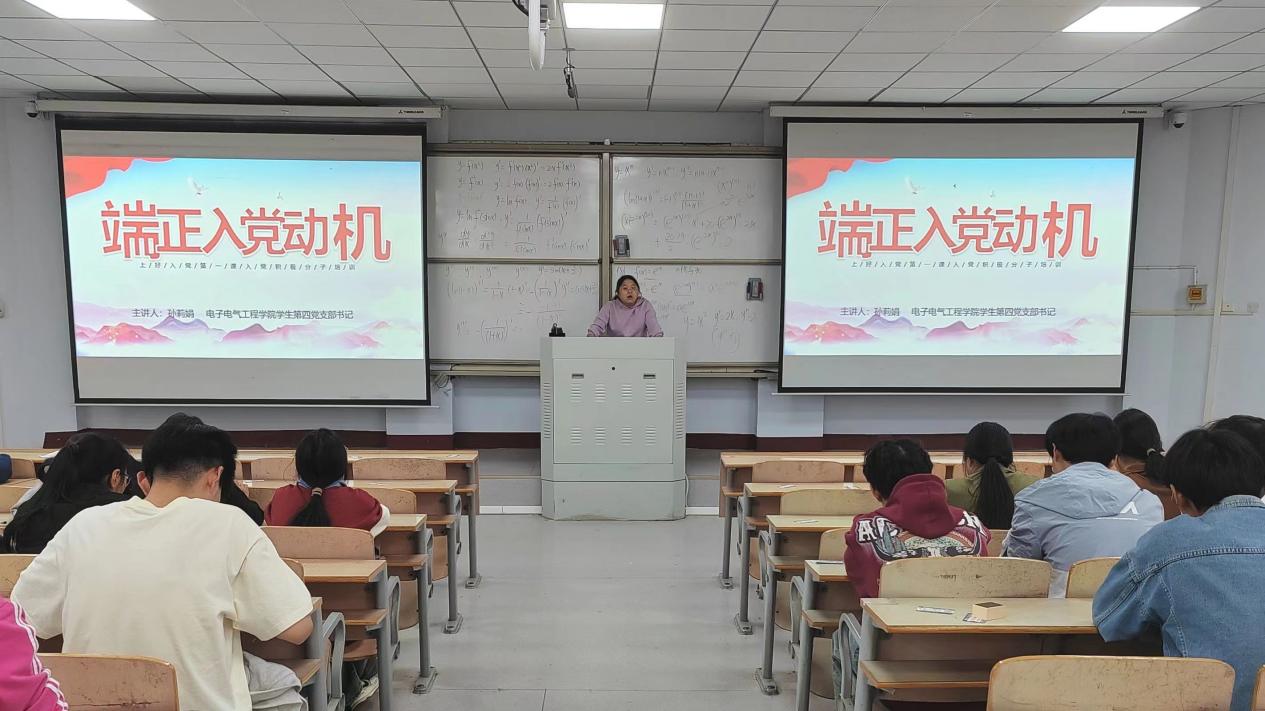 课上,孙莉娟围绕什么是正确的入党动机、为什么要端正入党动机、如何端正入党动机和创造条件以实际行动入党四个方面进行讲解,指出青年学子要严格以党员标准要求自己,加强党性锻炼,提高综合素质;自觉接受党组织的培养、教育和考察,定期主动向党组织汇报思想情况;要发挥带头示范作用,积极参加公司、公司、班级组织的各项活动。