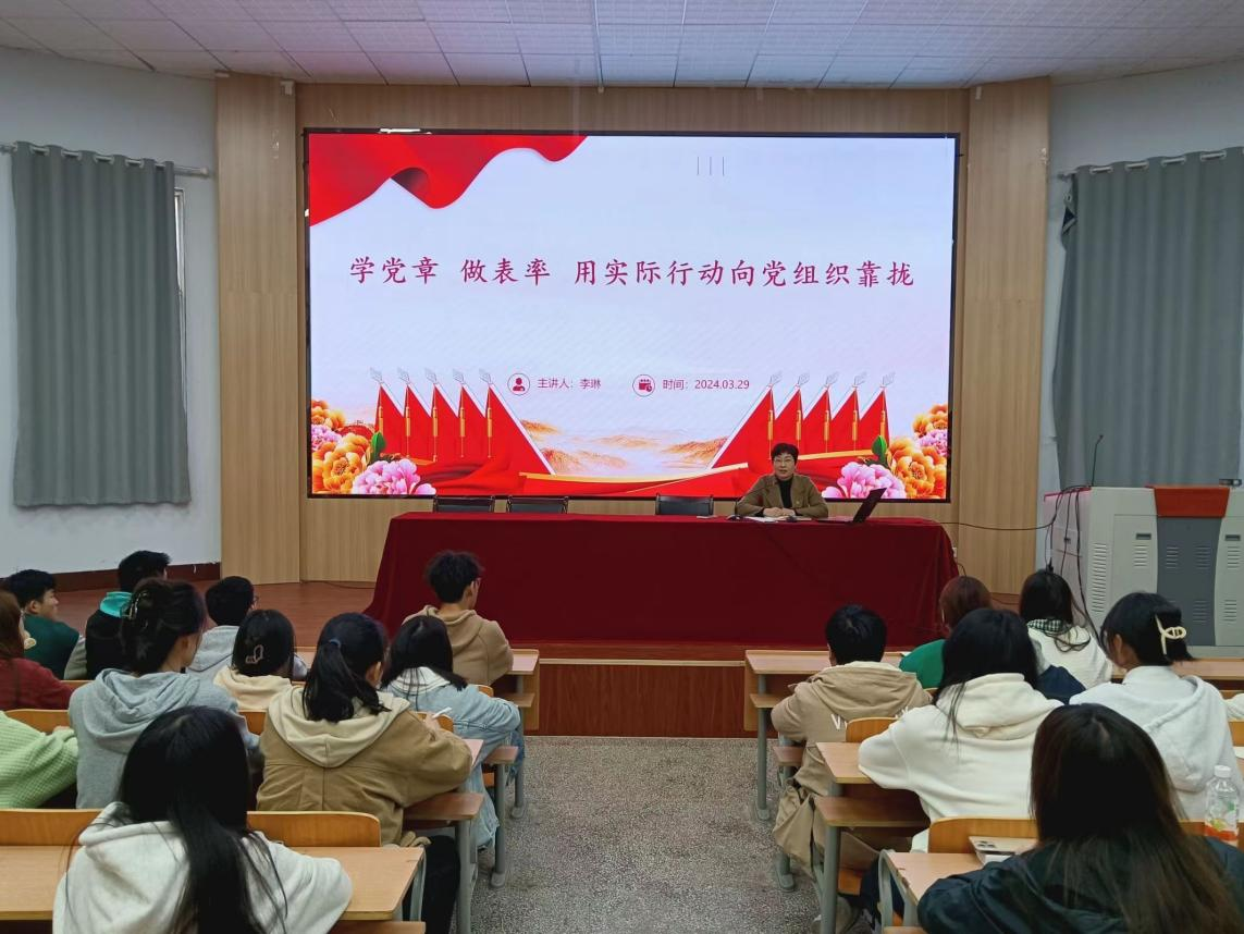 会上,李琳系统阐述了党章的重要地位和作用,从党章发展历程、党章的主要结构、主要内容三个方面,为同学们详细讲解了党章的丰富内涵,着重强调了党员的权利和义务,让同学们对党章有了更加深入的理解,对如何早日加入中国共产党有了更加清晰的规划。