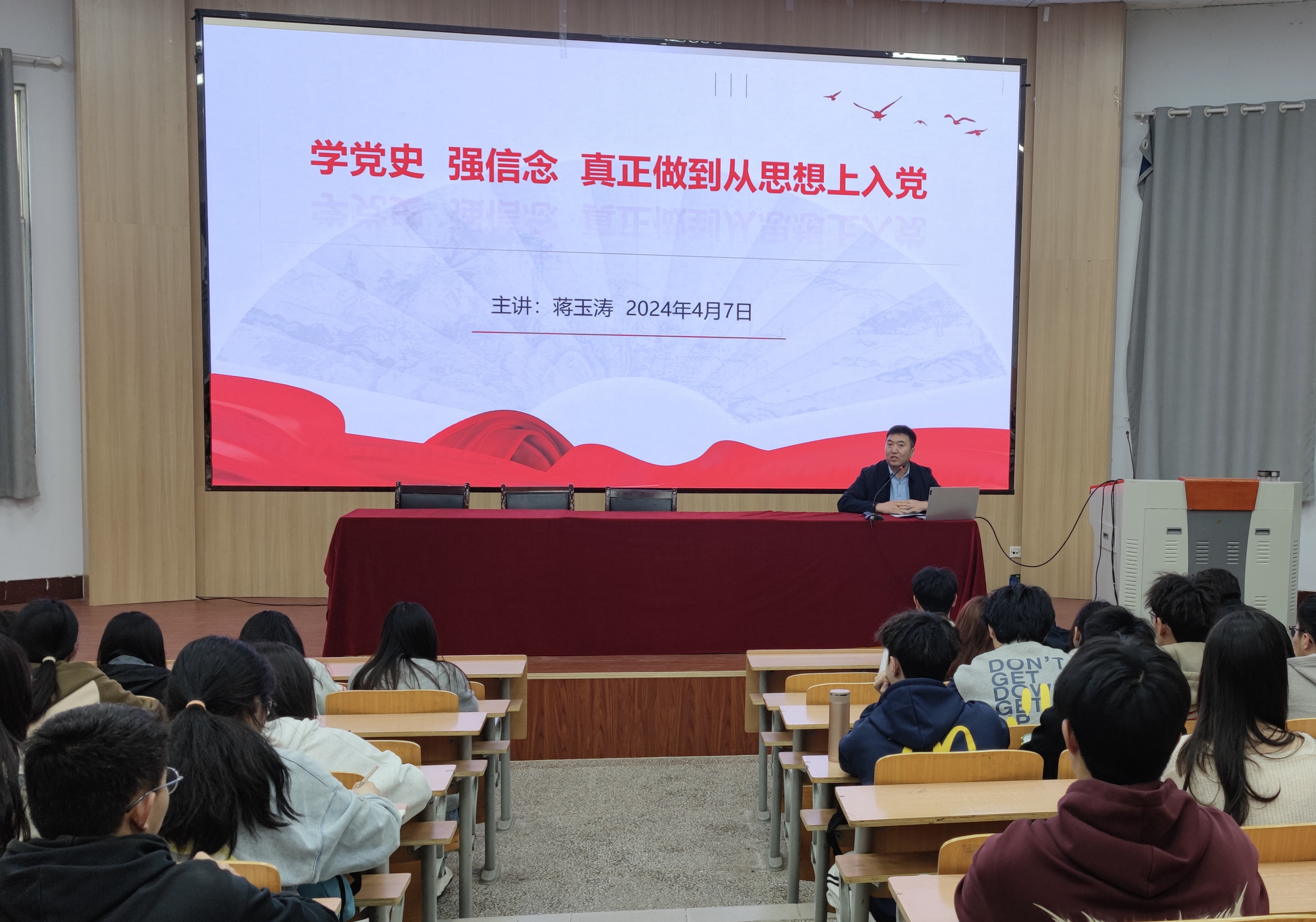 4月7日,公司党委副书记蒋玉涛为全院入党积极分子上党课,此次党课的主题是《学党史,强信念,真正做到从思想上入党》。