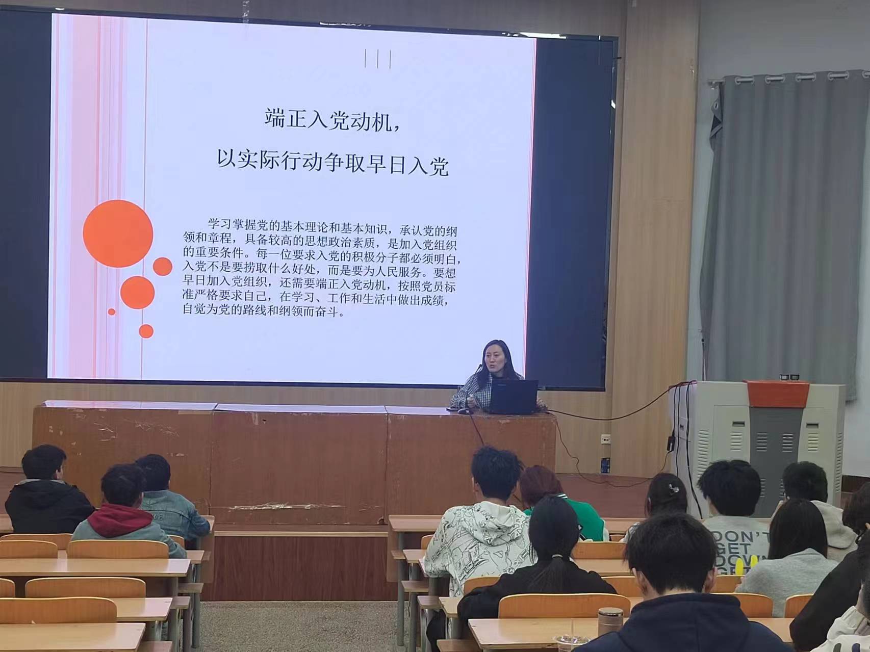 4月9日,公司员工第一党支部书记张佳琪以《端正入党动机以实际行动争取早日入党》为题为第54期入党积极分子上党课。