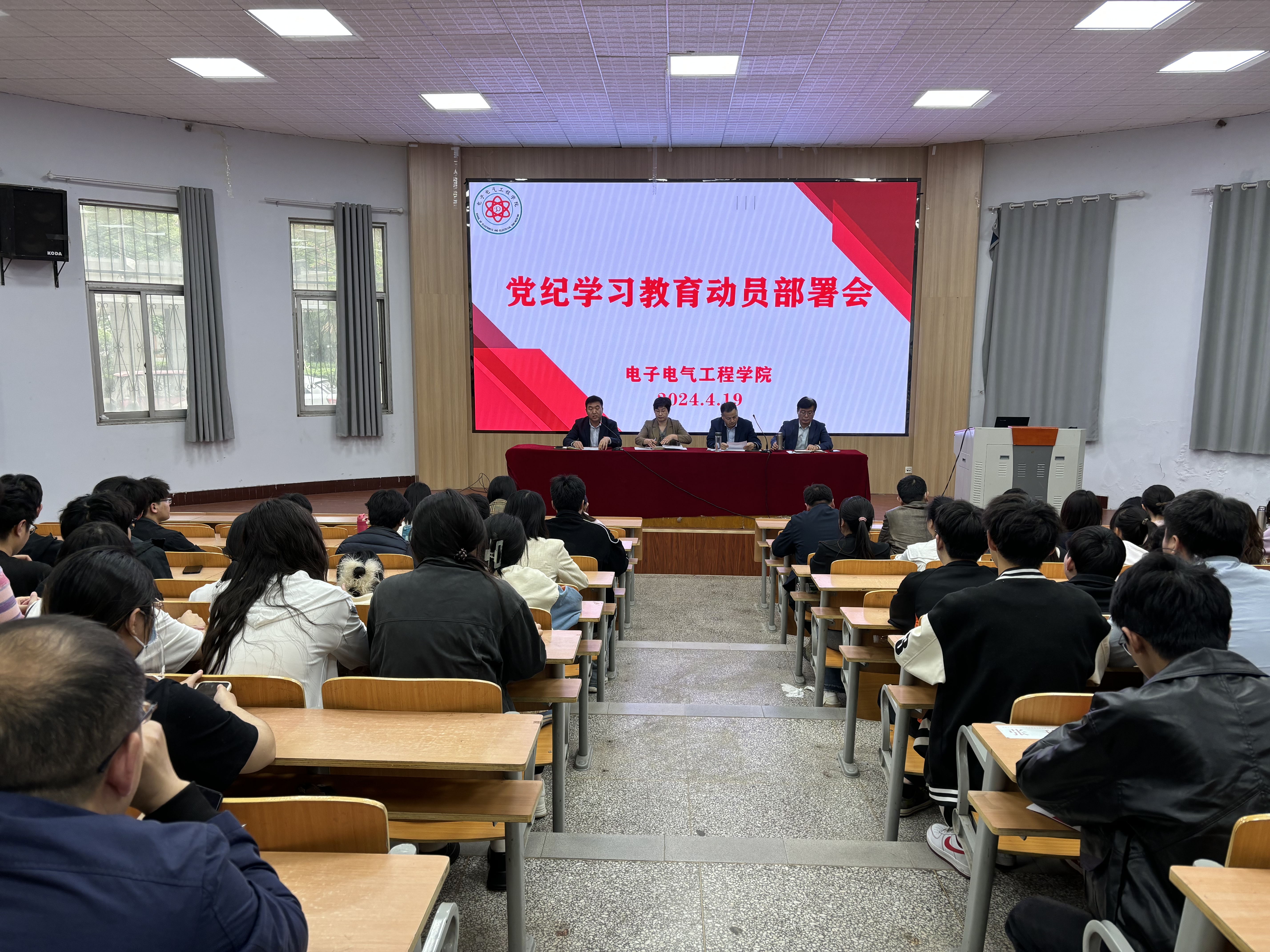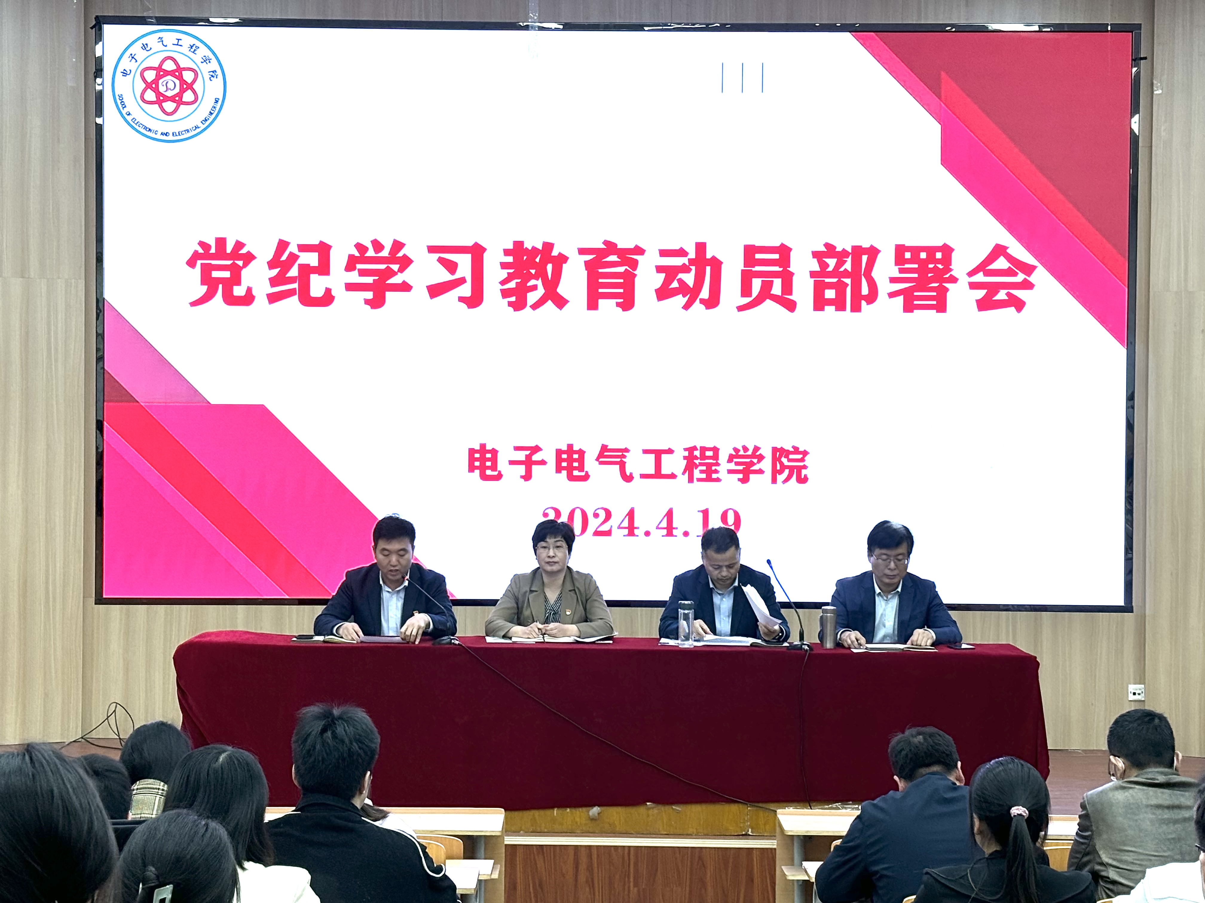 4月19日,公司于物电楼报告厅召开党纪学习教育动员部署会,公司领导班子及全体党员参会。