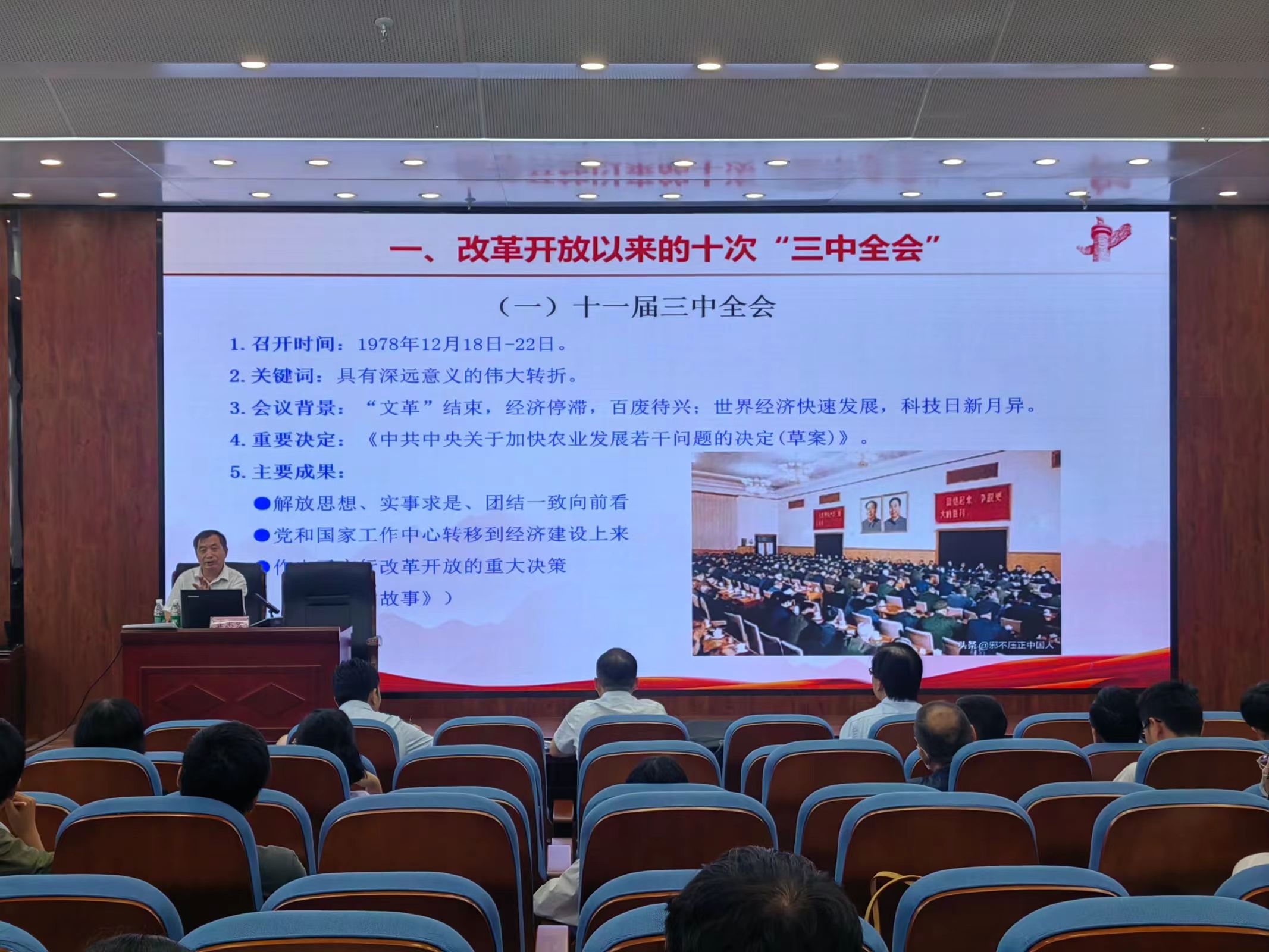 9月27日,受公司邀请,马克思主义公司党委书记龚志宏教授在工科实训大楼报告厅作《在新征程上继续把改革推向前进——党的二十届三中全会精神解读》专题报告会。公司全体教师、员工党员近200余人参加。报告会由公司党委书记李琳主持。